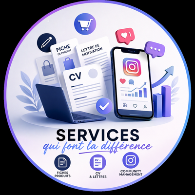 Je mets aujourd’hui ces compétences au service de mes clients pour : • Rédaction de CV et lettres de motivation professionnelles, claires et percutantes • Création et optimisation de fiches produits attractives et efficaces • Services digitaux variés pour développer, structurer et améliorer vos projets en ligne