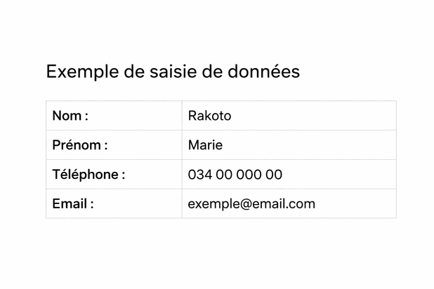 Saisie de données sur Excel et Google Sheets, copie de documents, organisation et vérification des informations, respect des consignes et des délais, travail sérieux et précis via téléphone Android et connexion internet.