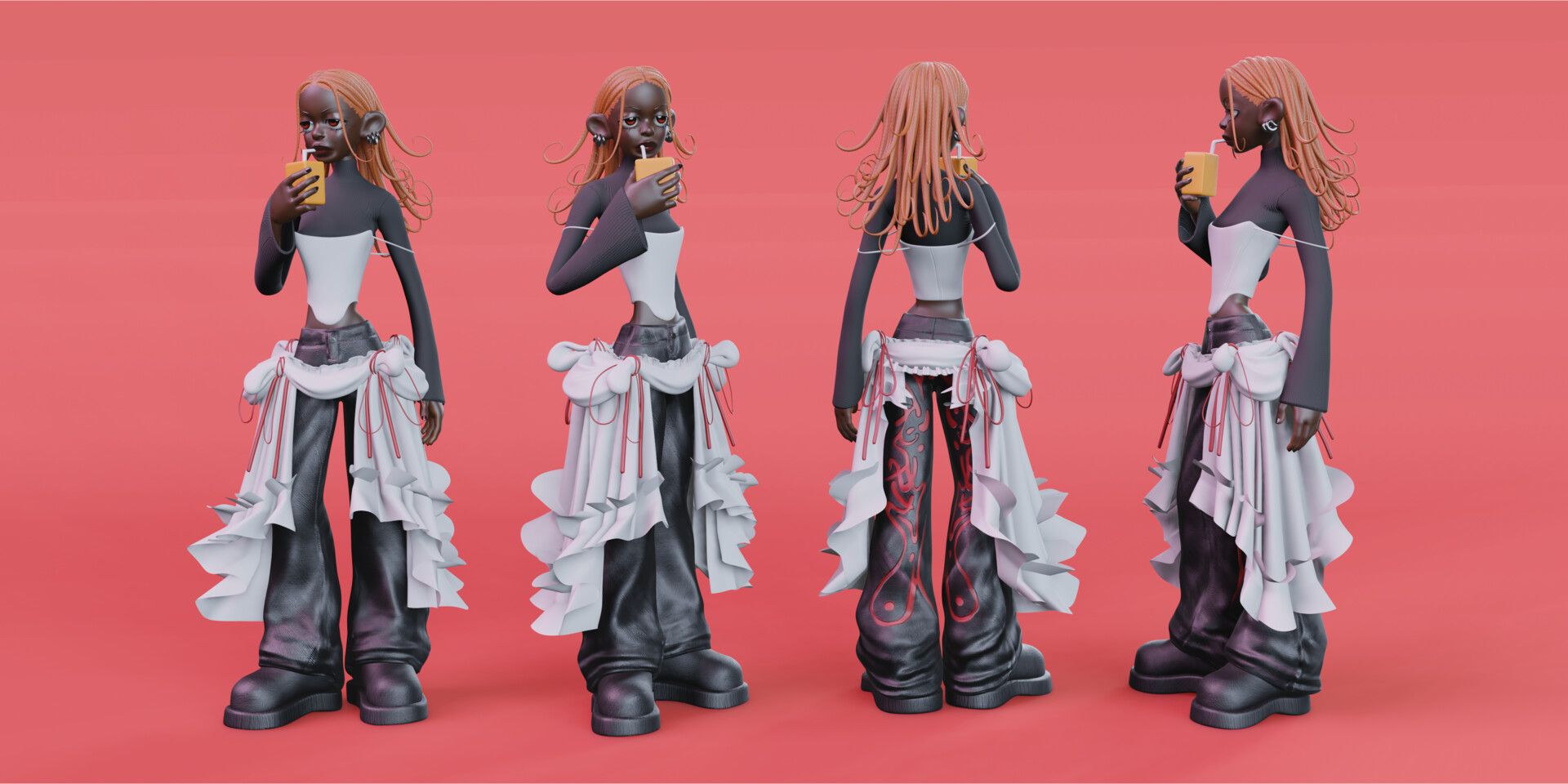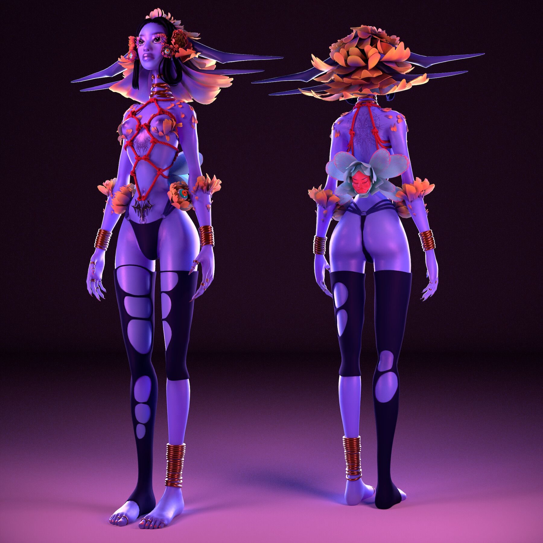J’ai toujours été intéressée par l’apprentissage de différents médiums, bien que principalement axé sur l’illustration digitale et traditionnelle, je créée des personnages 3D depuis 2019.