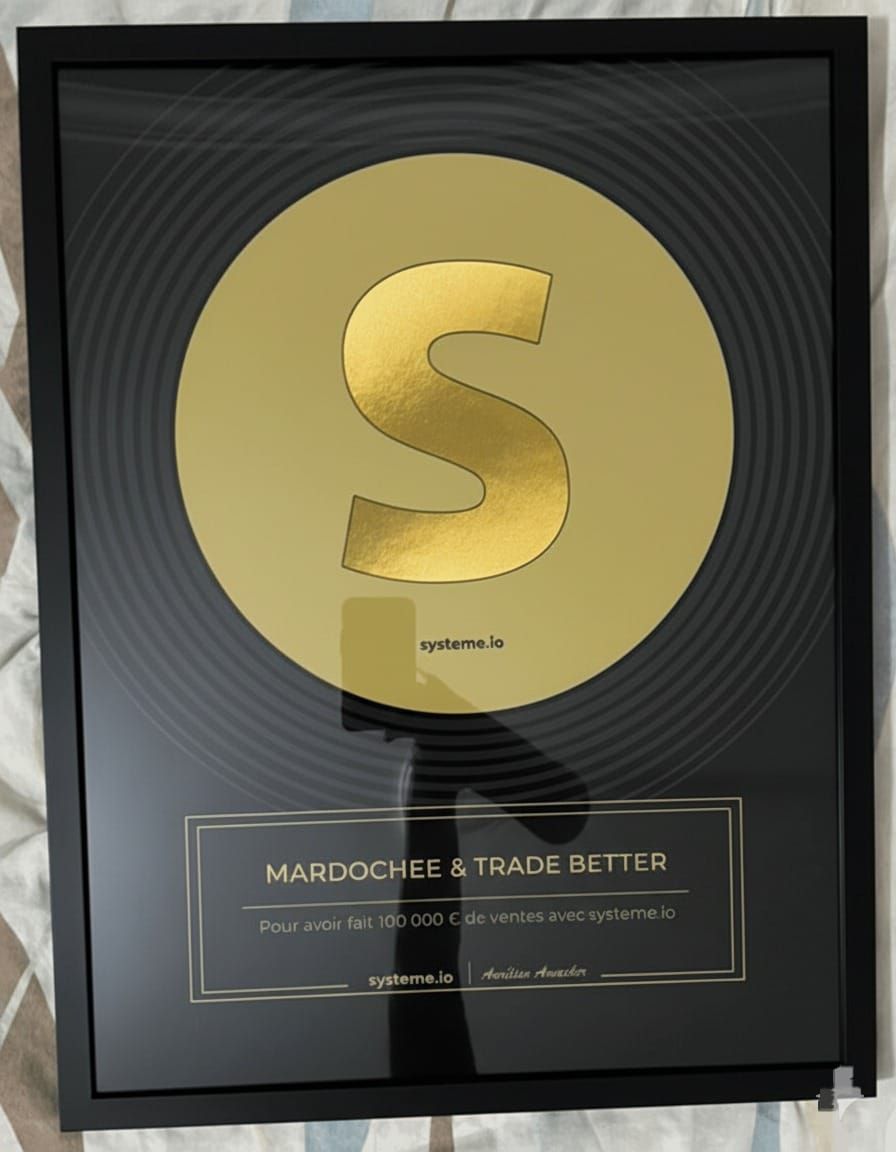 - TROPHÉE D'OR SYSTEME.IO POUR AVOIR GÉNÉRÉ PLUS DE 100.000€ AVEC UN CLIENT Systeme.io ‐ oct. 2025