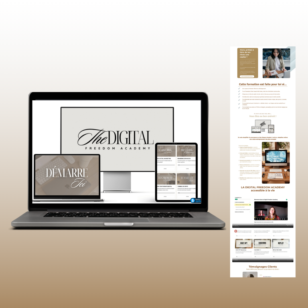 Création de tunnel de vente sur systeme.io Formation à l'utilisation de l'outil Systeme.io Coaching profession esthétique