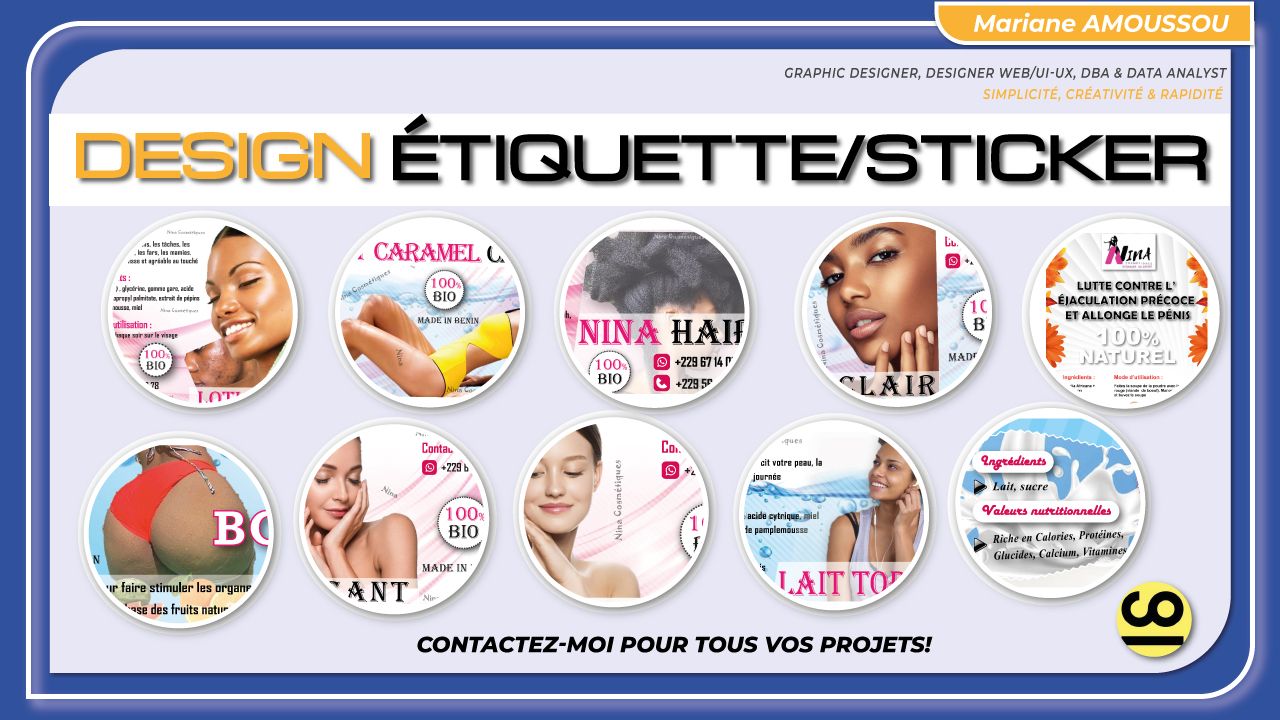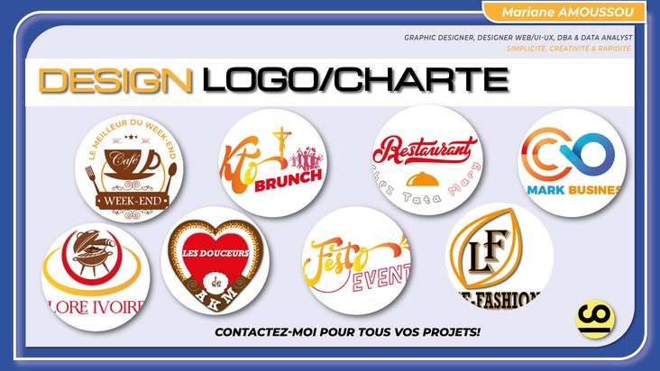 Plus de 8 ans d'expérience en design, communication visuelle et numérique, je transforme vos idées en créations visuelles impactantes : logos, flyers, cartes de visite, menus restaurant, étiquettes, brochures, maquettes web/mobile… tout en veillant à capter l’attention et séduire vos clients dès le premier regard.