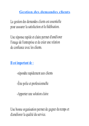 - Gestion du service client