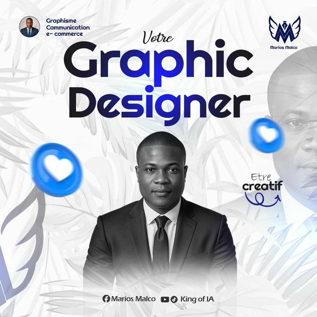 Je suis un graphiste passionné basé au Bénin, spécialisé en création de logos, identité visuelle et communication graphique. J’aide les entreprises et entrepreneurs à développer une image moderne, unique et professionnelle, adaptée à l’international.