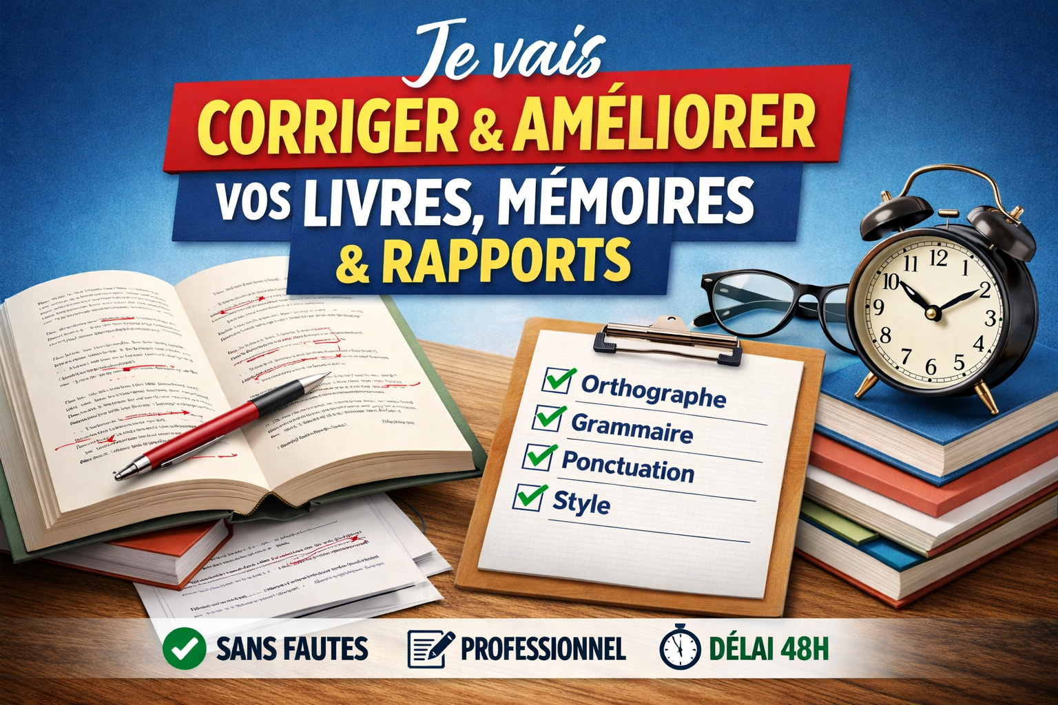 Je vais corriger et améliorer vos livres, mémoires, rapports et documents