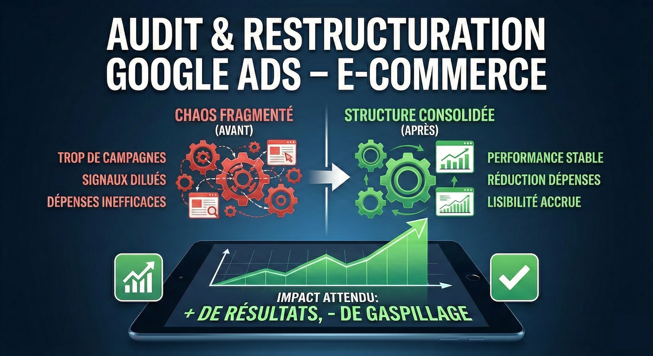 Je vais restructurer entièrement votre compte Google Ads pour améliorer la performance
