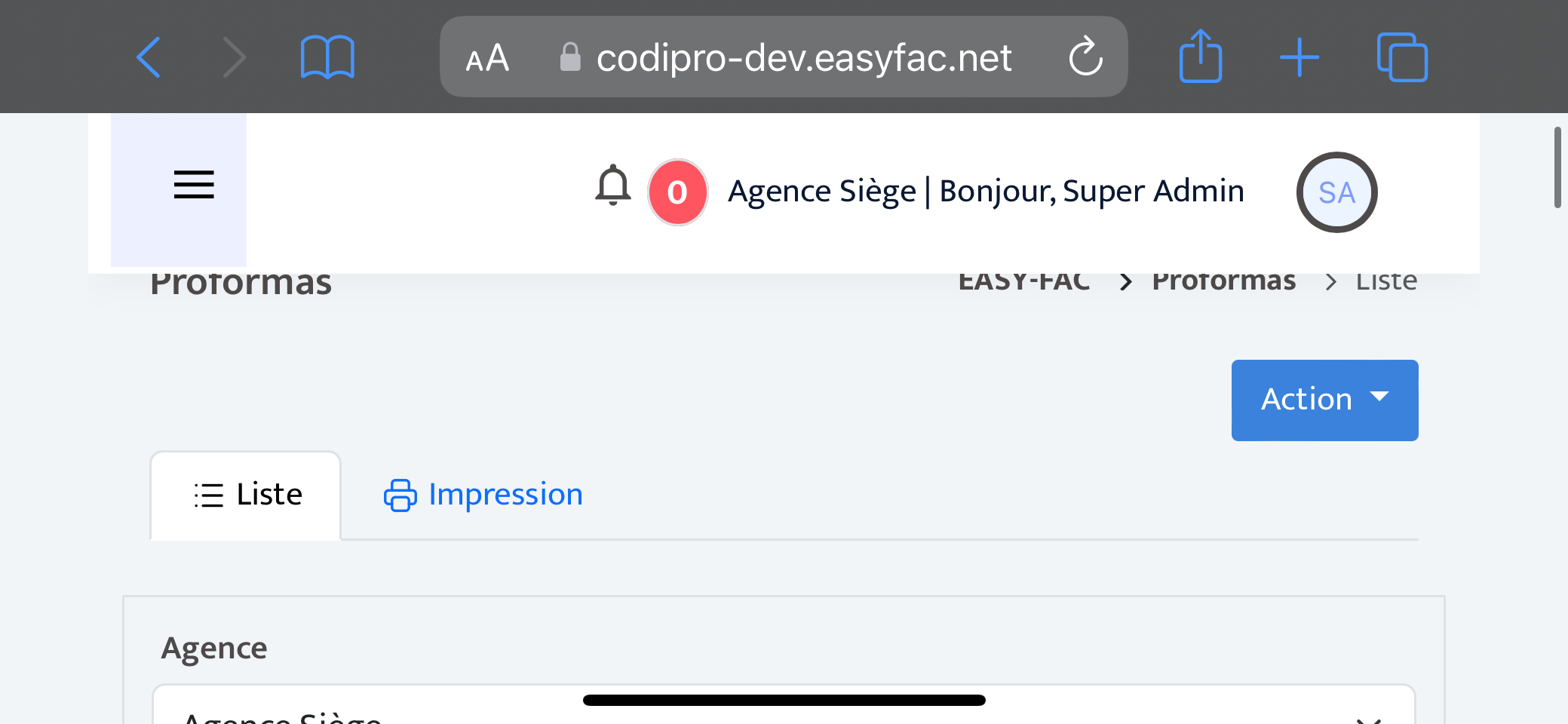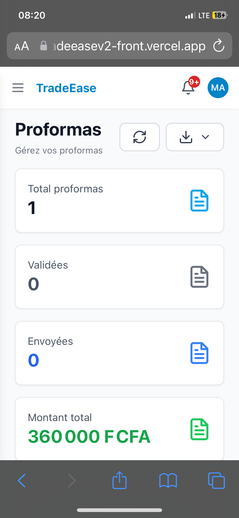 Vente au total 0