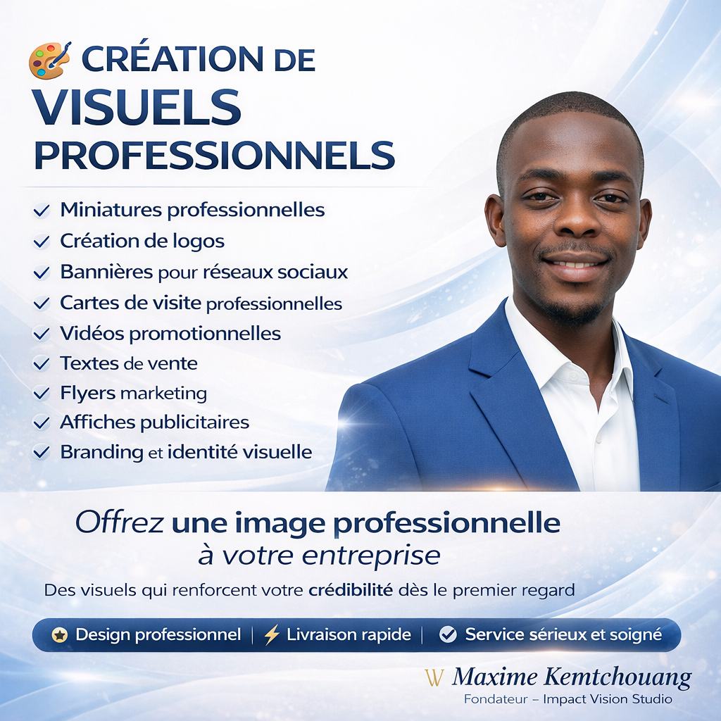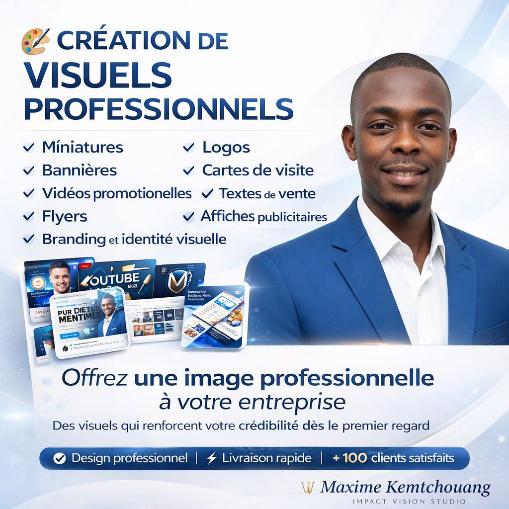 Création de visuels marketing pour entreprises, entrepreneurs et marques. Missions principales : Création de logos professionnels et uniques Conception de flyers, affiches et cartes de visite Création de bannières et visuels réseaux sociaux Réal -