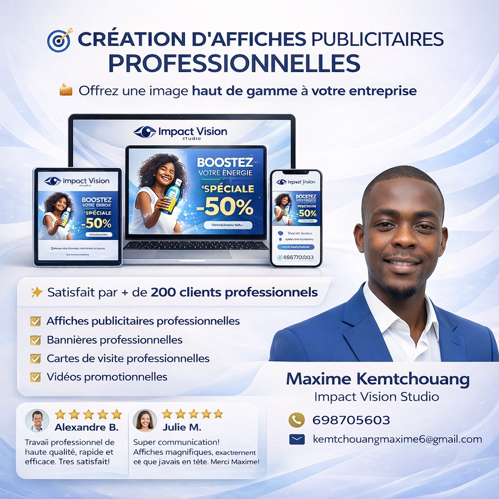 Je vous propose la création de visuels publicitaires professionnels conçus pour attirer l’attention et renforcer votre visibilité.