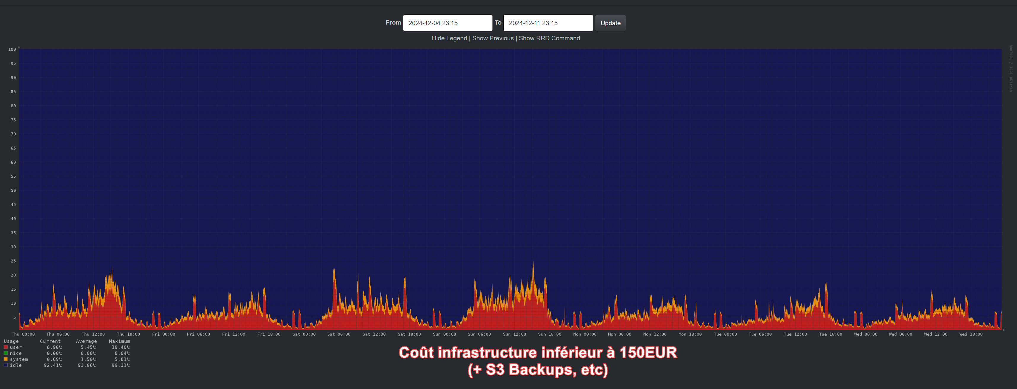 - État actuel (2024) : +200 hosts en monitoring (+400 cores/threads) Pour contextualiser, un hôte peut héberger de 1 à 10 sites 99% du temps.