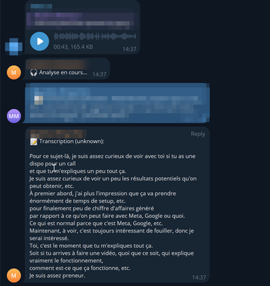 Bien que ces domaines ne soient pas listés dans mes offres publiques, je peux les mobiliser pour des besoins spécifiques. Vous bénéficierez ainsi d’une solution plus complète, à condition que votre projet et ma spécialisation soient pertinents l’un pour l’autre. Dans le cas contraire — si cela ne touche ni l’entrepreneuriat ni l’administration système (performance, sécurité, optimisation) — je vous conseille de faire appel directement à un spécialiste. Cela vous reviendra équitablement moins cher et plus rapide.