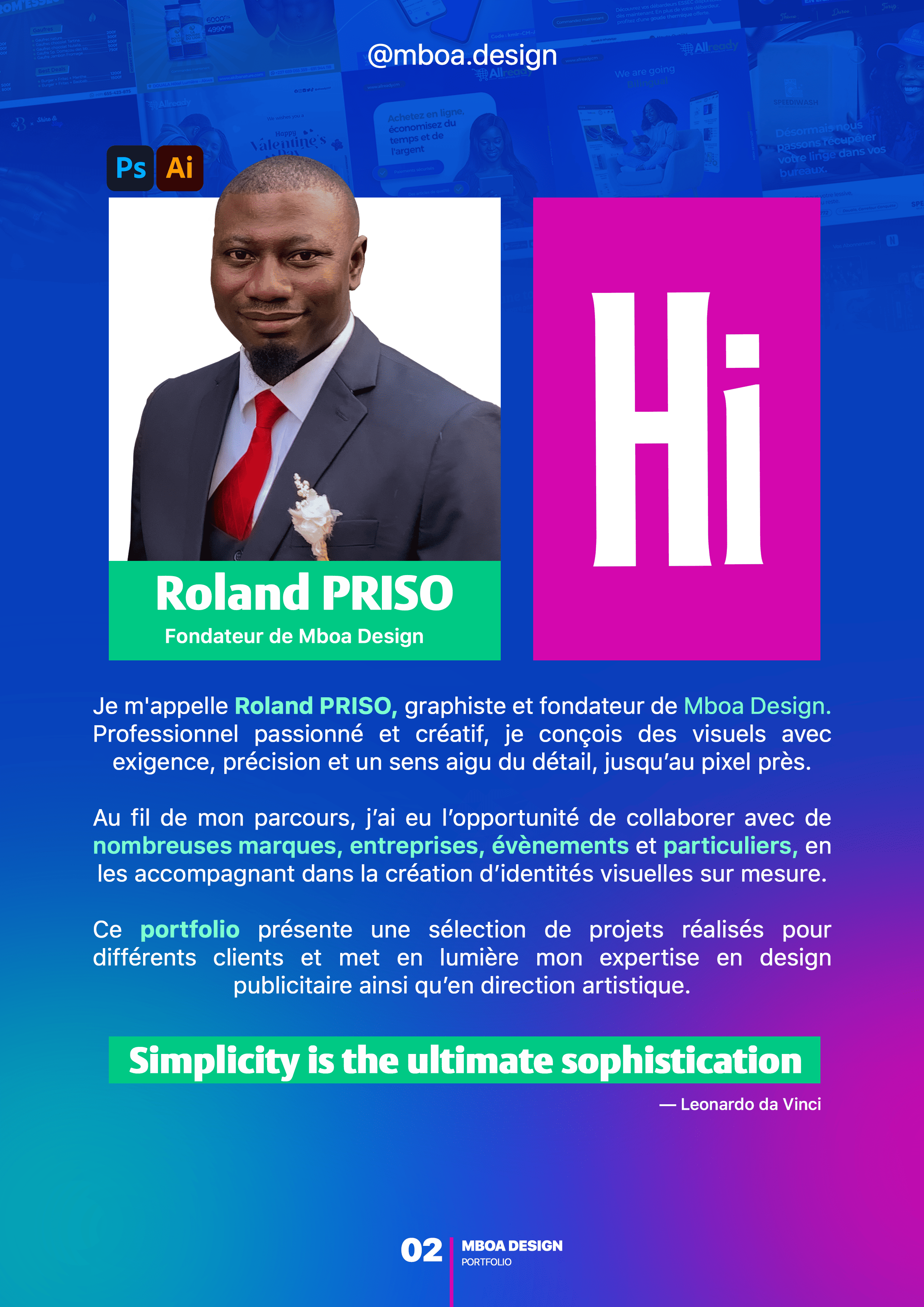 Professionnel dans le domaine du Design graphique et maîtrisant à la lettre les logiciels de la gamme Adobe, Je m’appelle Roland !