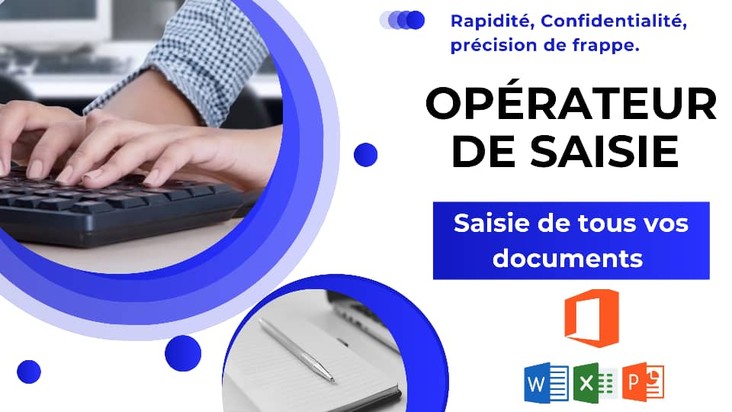 Si vous cherchez un opérateur de saisie fiable, précis et rapide, capable de gérer vos données et documents avec professionnalisme, je me tient à votre disposition.