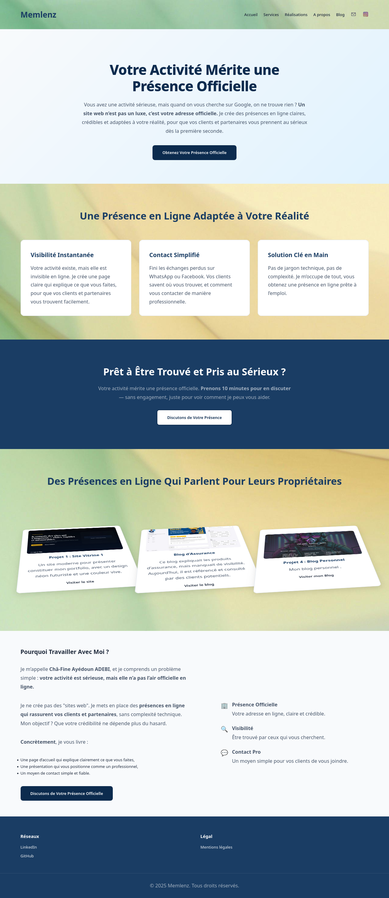 Mon approche est directe : zéro jargon, 100% de résultats. Mon objectif est que votre site devienne votre meilleur commercial, disponible 24h/24.