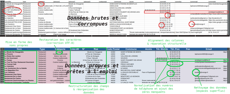 Nettoyage de Données : Suppression des doublons, normalisation des formats (adresses, téléphones, dates) et restructuration complète de vos bases CRM.