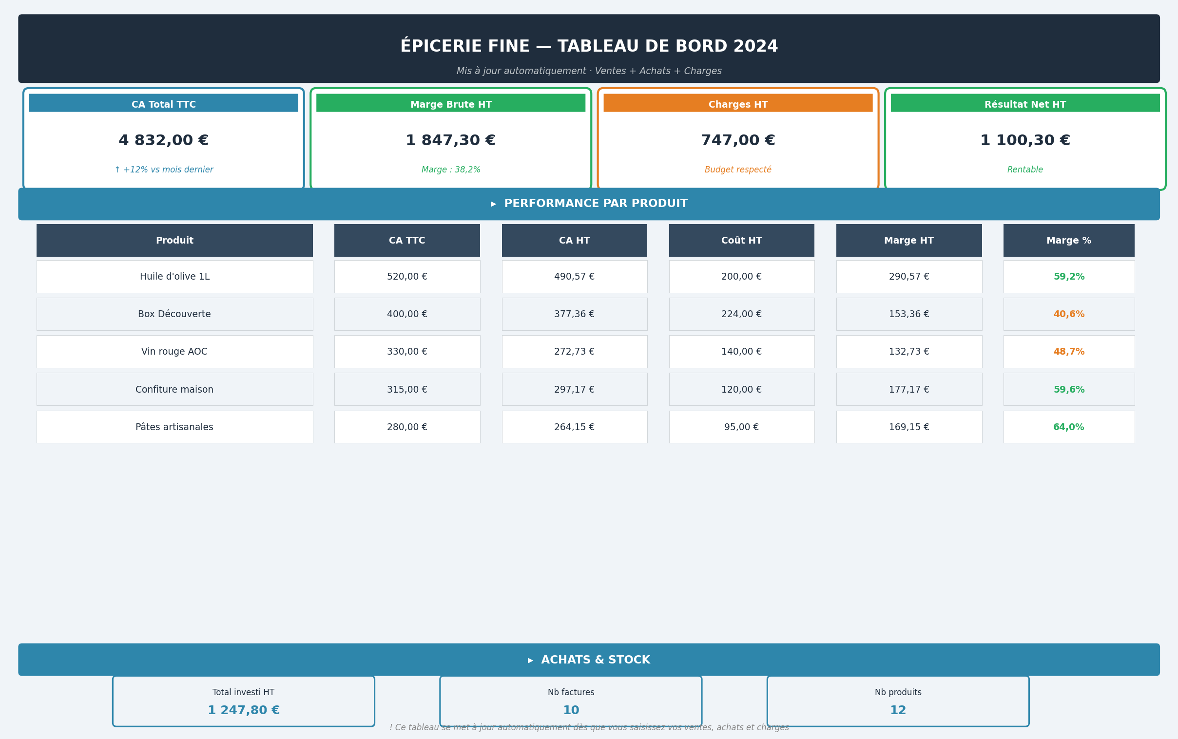 Je crée vos fichiers Excel & Google Sheets de gestion — clairs, automatiques et prêts à l'emploi