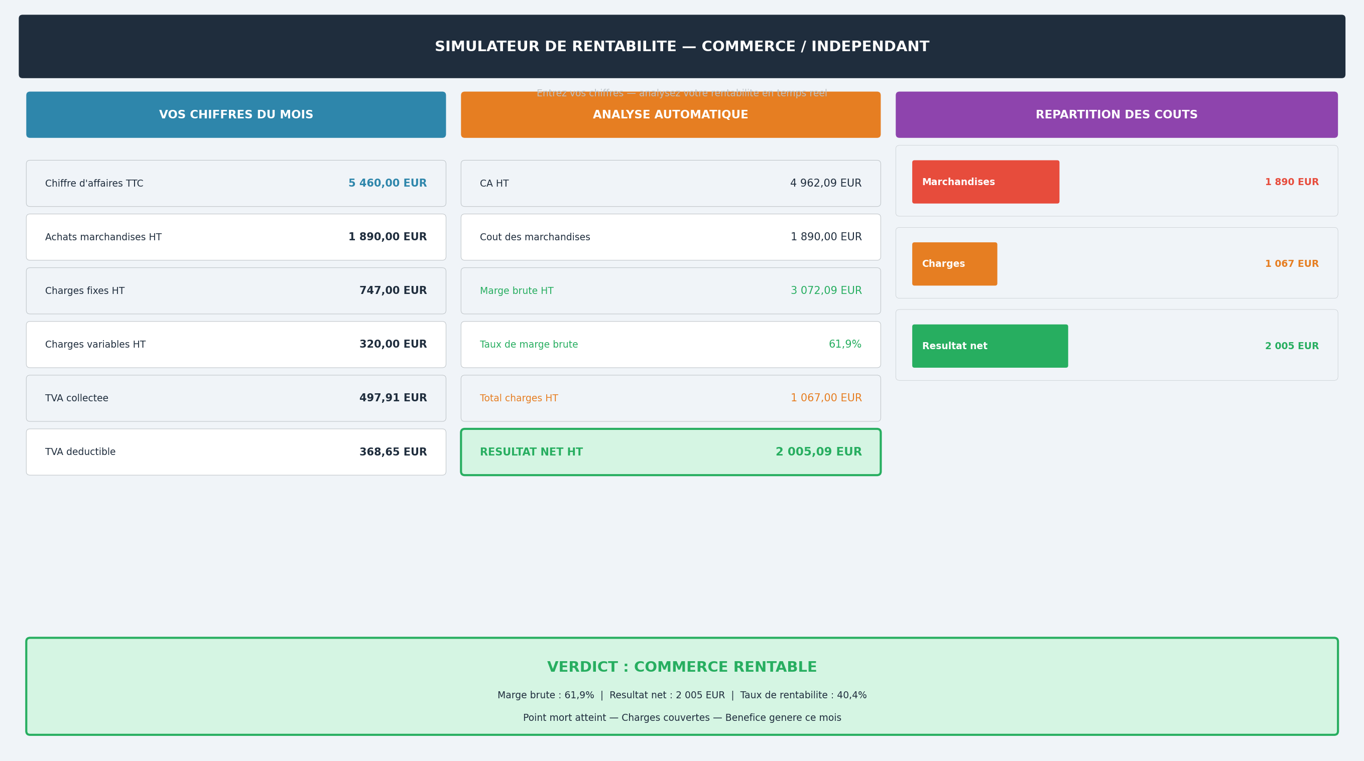 Ce que je crée pour vous : ✔️ Fichier de gestion complet pour indépendant ou petit commerce ✔️ Suivi des ventes et calcul de marges automatique ✔️ Gestion TVA belge intégrée ✔️ Dashboard synthétique mis à jour en temps réel ✔️ Correction et amélioration de votre fichier existant