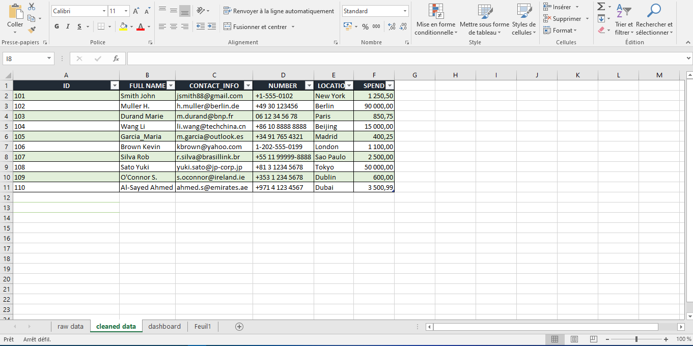 Nettoyage de bases de données : Suppression de doublons, tri intelligent et mise en forme.