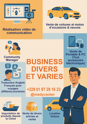 Gestionnaire de projet graphique, création de visuel de communication (Affiches & Vidéos publicitaires), community manager (gestionnaire commercial des activités de l'entreprise, gestionnaire de réseaux sociaux)