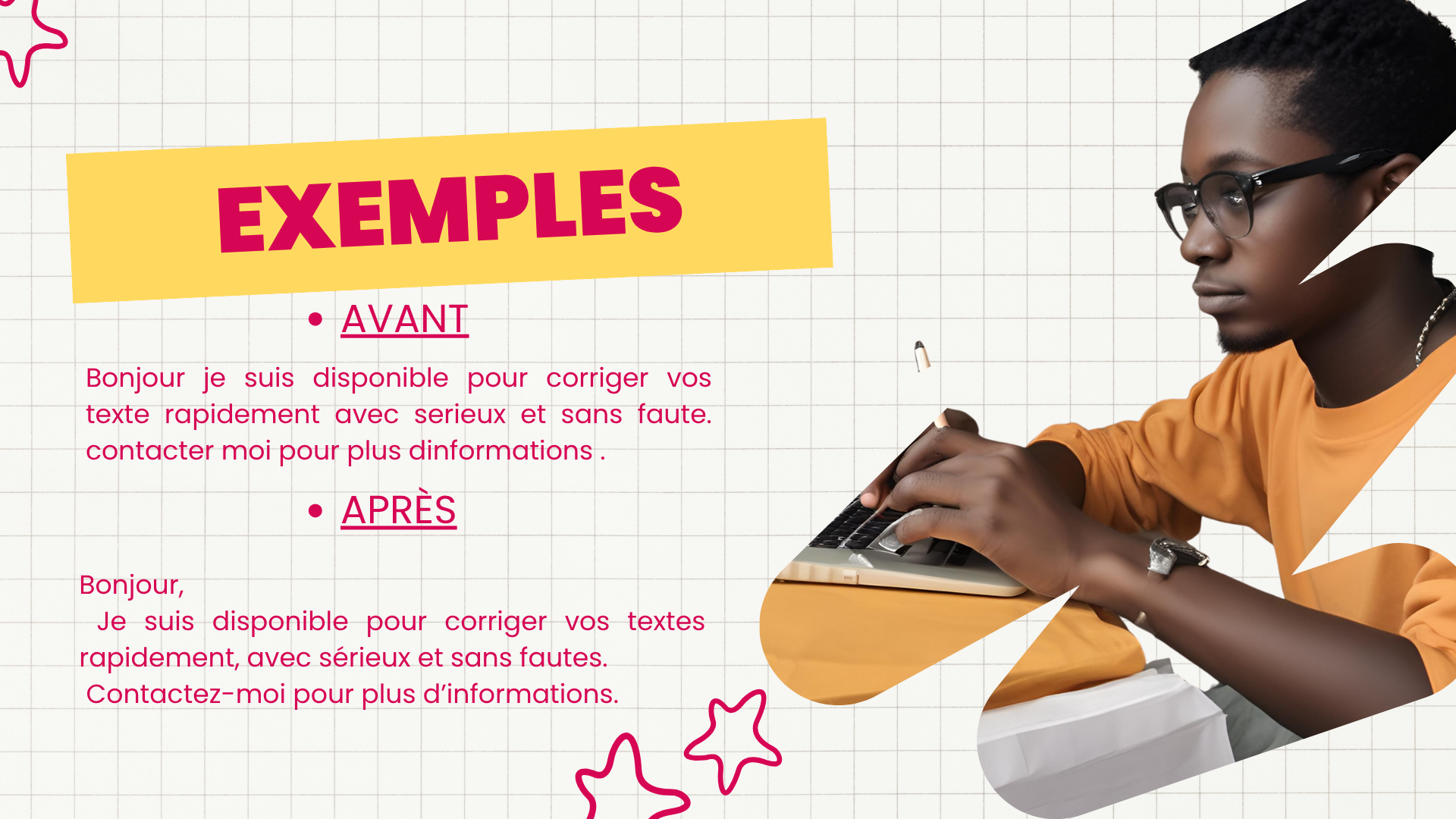 Je vais corriger , reformuler et améliorer vos textes avec précision