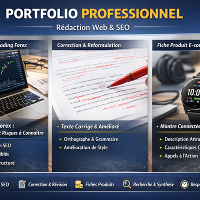 1. Je rédige et corrige vos textes en français ✅ simple et clair 2. Rédaction SEO & correction prof