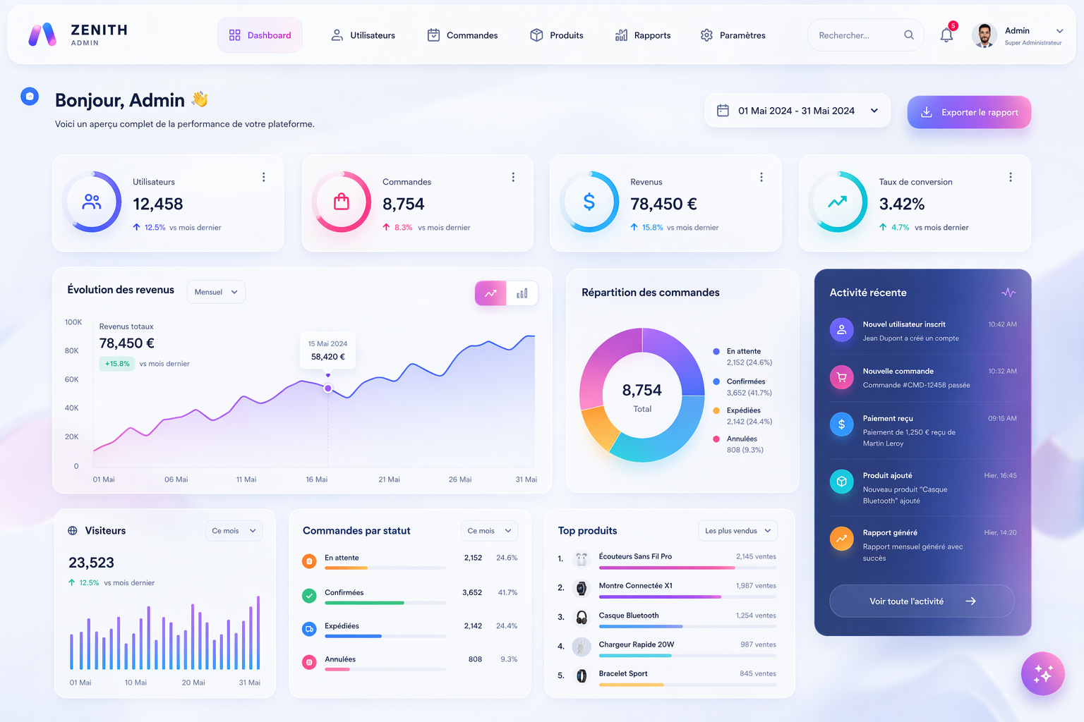Exemples de réalisations : ✔ systèmes de gestion interne ✔ dashboards administrateurs ✔ applications métiers ✔ outils de suivi et reporting