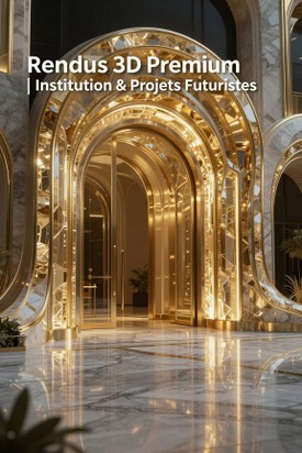 Pack Prestige – Valeur Maximale Prix : 230 000 F CFA Ce que vous recevez : 3 rendus 3D ultra-luxueux de différents angles : Vue principale full view Entrée monumentale en close-up Perspective aérienne ou dramatique Matériaux hyper-réalistes et ultra-détails : marbre, or cristallin, onyx Lumière divine, halo subtil et atmosphère majestueuse Textes intégrés élégants pour branding et présentation Images optimisées pour 8K, portfolio ou marketing haut de gamme Pourquoi choisir ce pack : Parfait pour les projets sérieux nécessitant un rendu haut de gamme multi-perspectives. Offre une expérience immersive et convaincante de l’architecture futuriste.