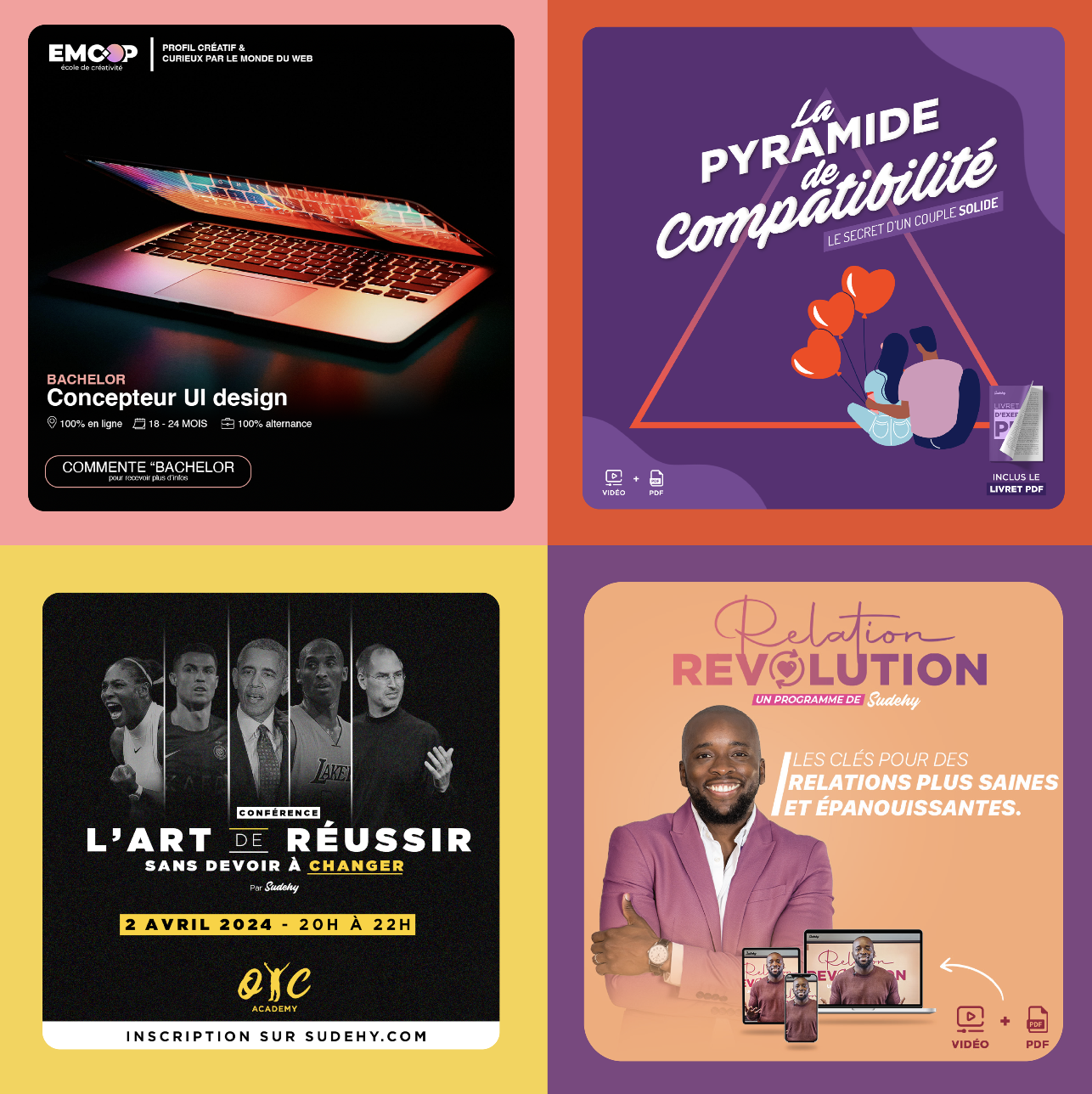 Je suis graphiste, webdesigner et créateur digital, spécialisé dans la conception visuelle moderne et l’accompagnement des entreprises, coaches, organismes de formation et établissements publics.