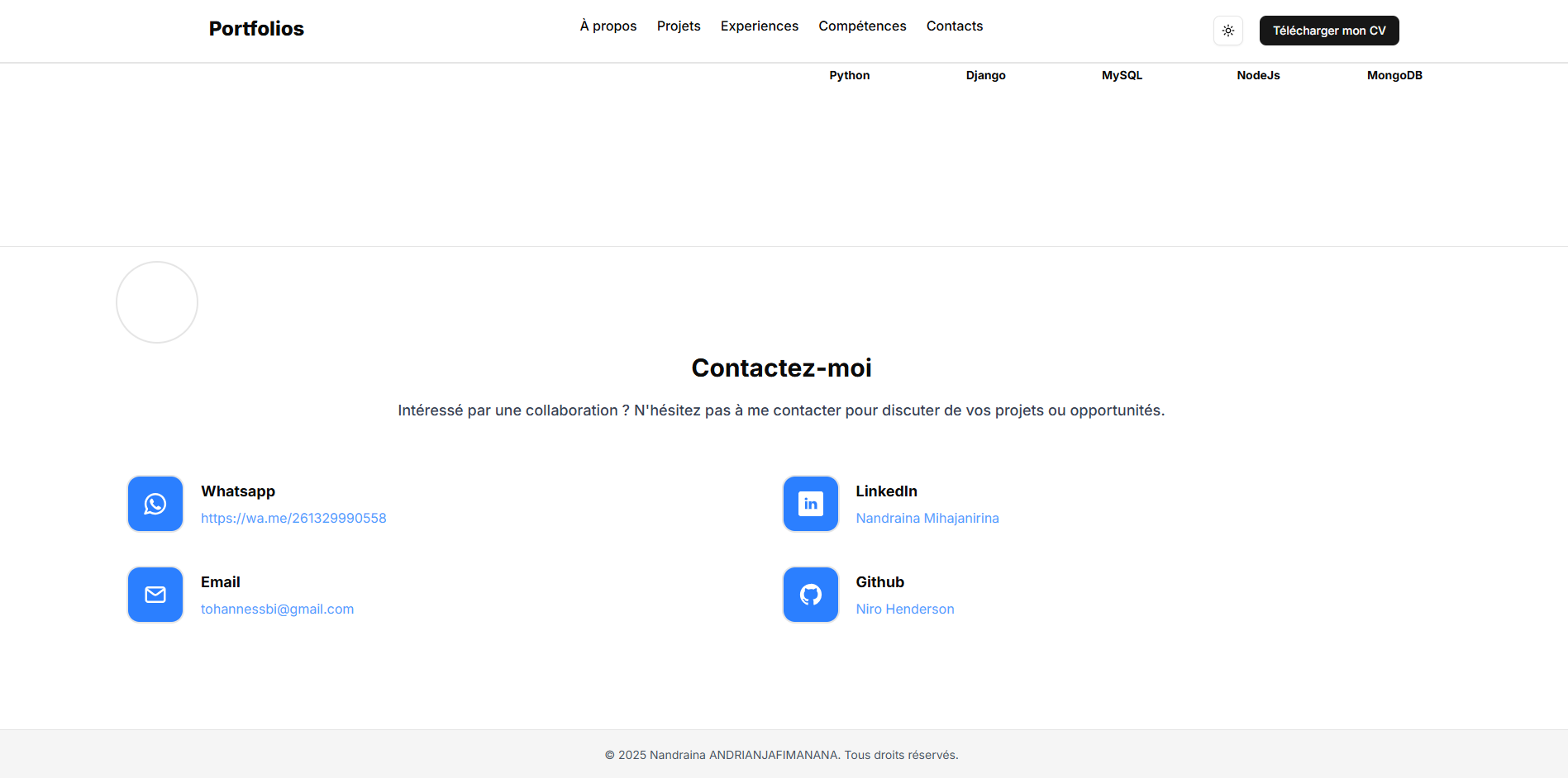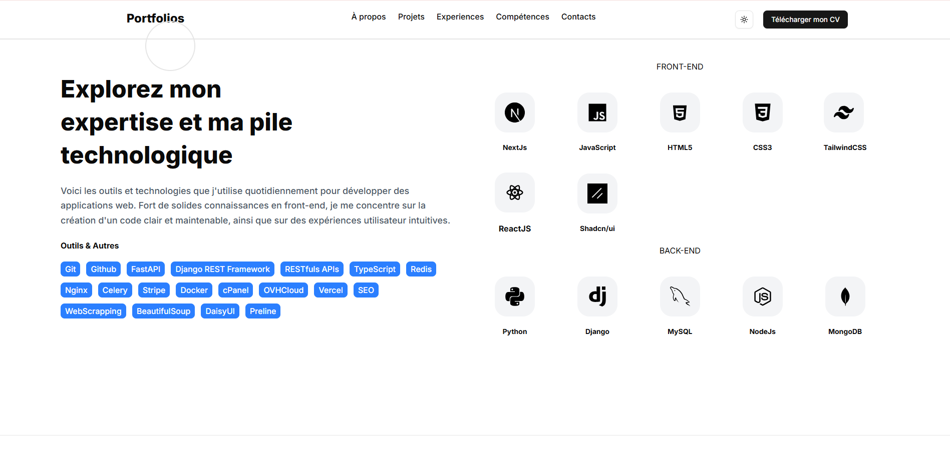 Je travaille avec des technologies modernes comme React, Next.js, Django, FastAPI et Python pour développer des applications rapides, sécurisées et évolutives.