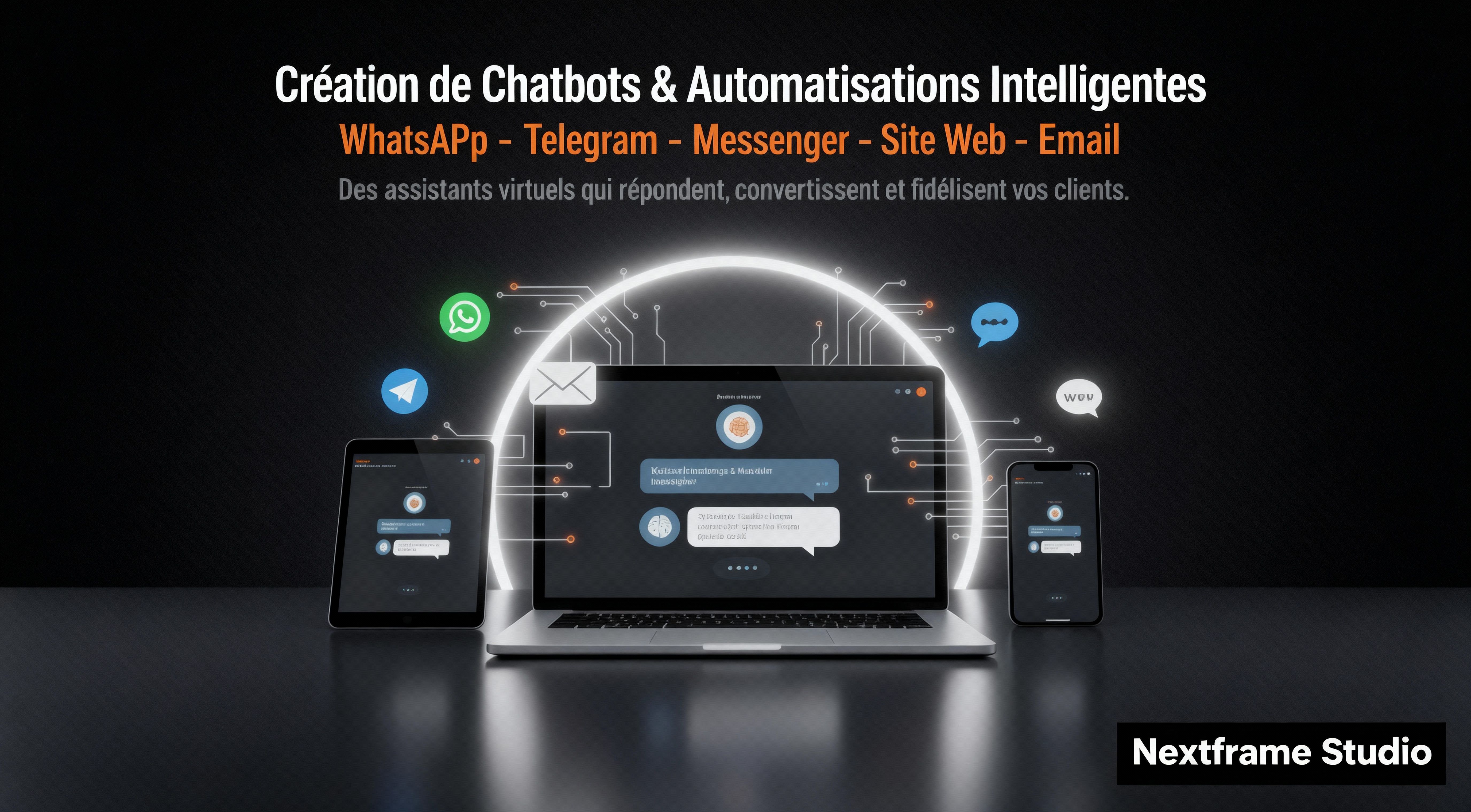 🚀 Chez Nextframe Studio, nous transformons vos idées en expériences digitales puissantes. Notre mission : aider les entrepreneurs, marques et entreprises à se démarquer, vendre et automatiser grâce à des sites web modernes et des chatbots intelligents.