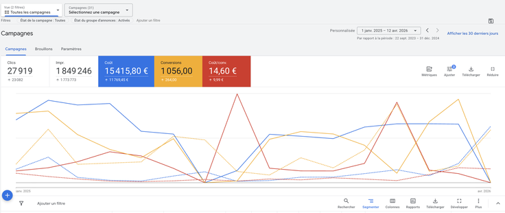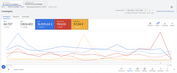 Je suis media buyer depuis plus de 10 ans, spécialisé en acquisition payante, Google Ads, Meta Ads et tracking avancé.