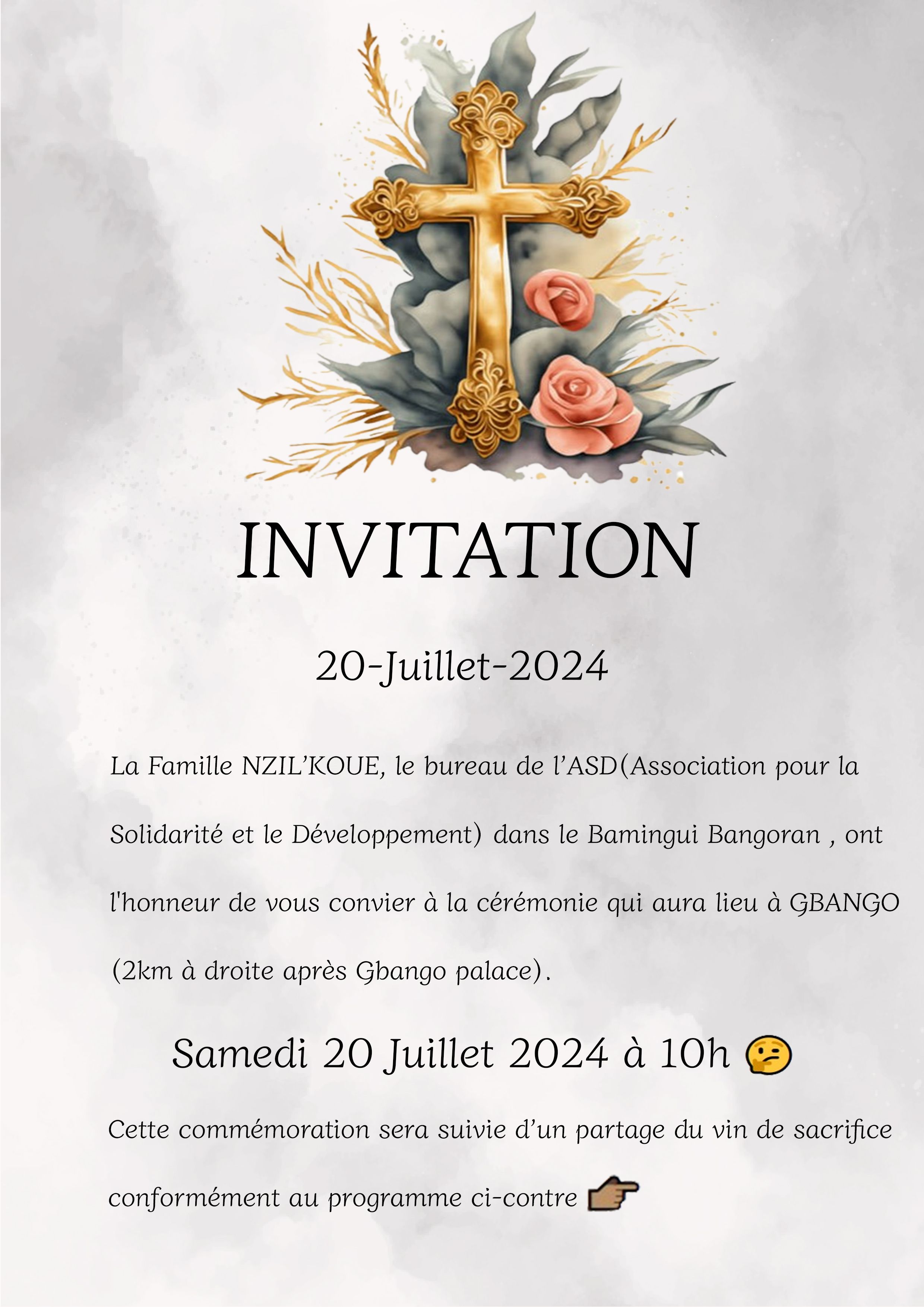 Carte d'Invitation pour le Premier Anniversaire de Décès