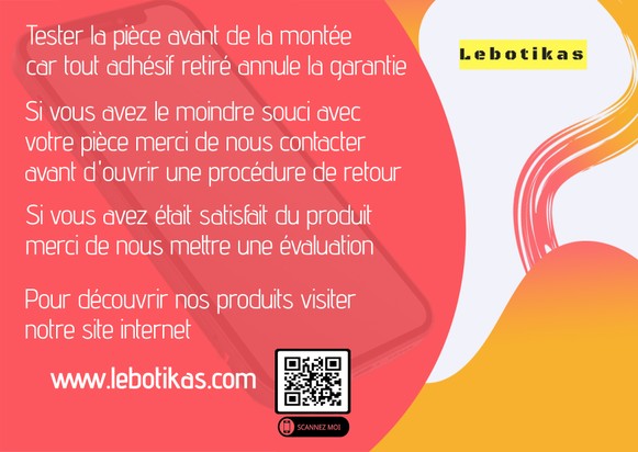 J'ai conçu un flyer au format paysage pour Lebotikas, une entreprise spécialisée dans la vente de pièces détachées. Le flyer met en avant des informations essentielles pour les clients concernant la garantie des produits et les procédures de retour, tout en soulignant l'importance de tester la pièce avant toute installation. Il incite également les clients satisfaits à laisser une évaluation, renforçant ainsi la crédibilité et la confiance envers la marque. Enfin, un appel à l'action encourage les clients à découvrir davantage de produits sur le site web de l'entreprise, avec un design simple, clair et axé sur l'expérience client.