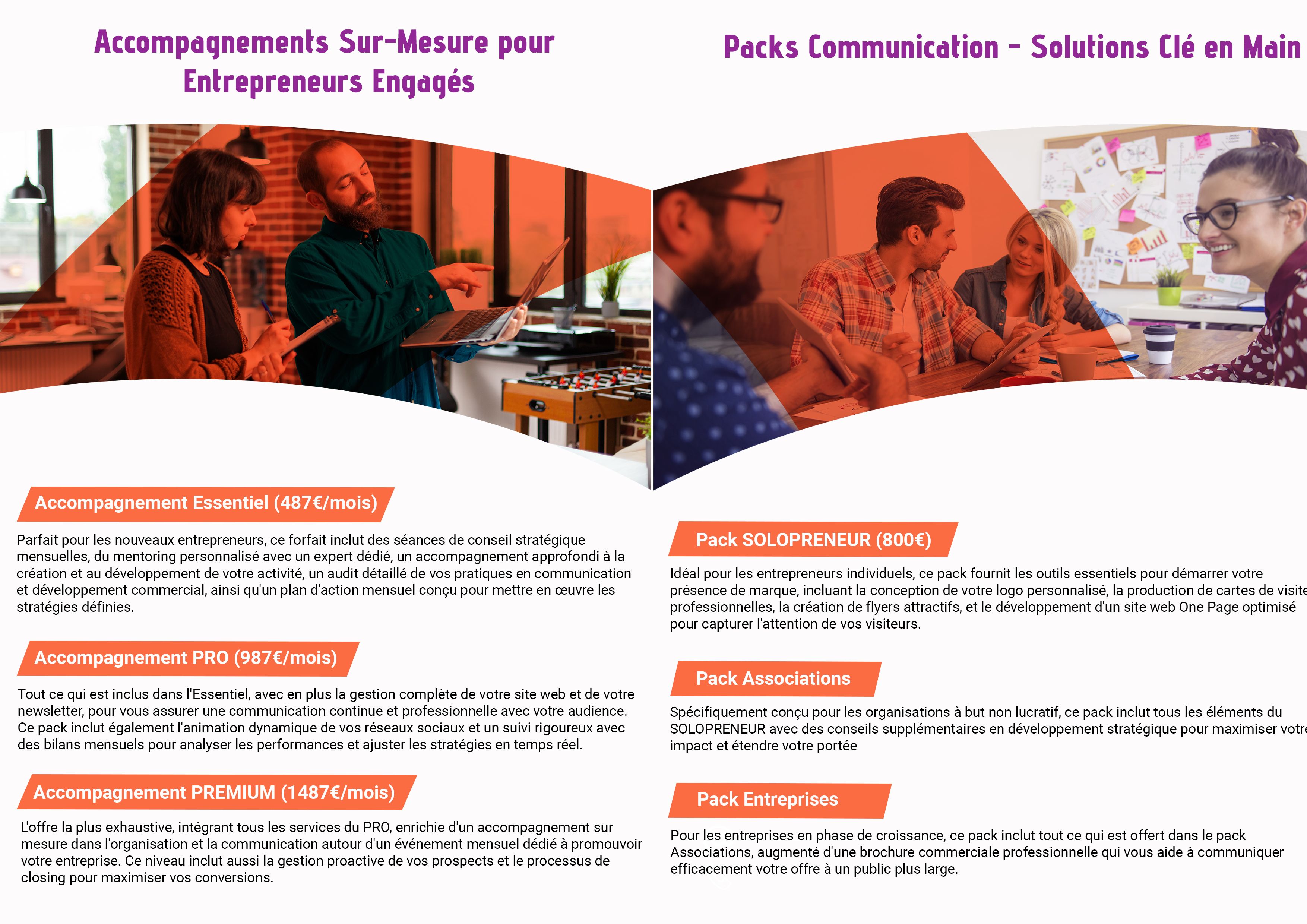 J'ai conçu une brochure pour EKOMEDIA+, une agence engagée dans la communication éthique, créative et responsable. La brochure met en avant les valeurs de l'agence, ses services sur-mesure pour les entrepreneurs et associations engagés, ainsi que ses packs de communication et services web. Chaque volet de la brochure est soigneusement conçu pour être à la fois informatif et visuellement attrayant, avec des éléments graphiques qui reflètent l'expertise et la passion de l'agence. L'objectif était de créer un support élégant et clair pour attirer de nouveaux clients et mettre en avant l'impact positif de l'agence dans le monde des affaires et au-delà.