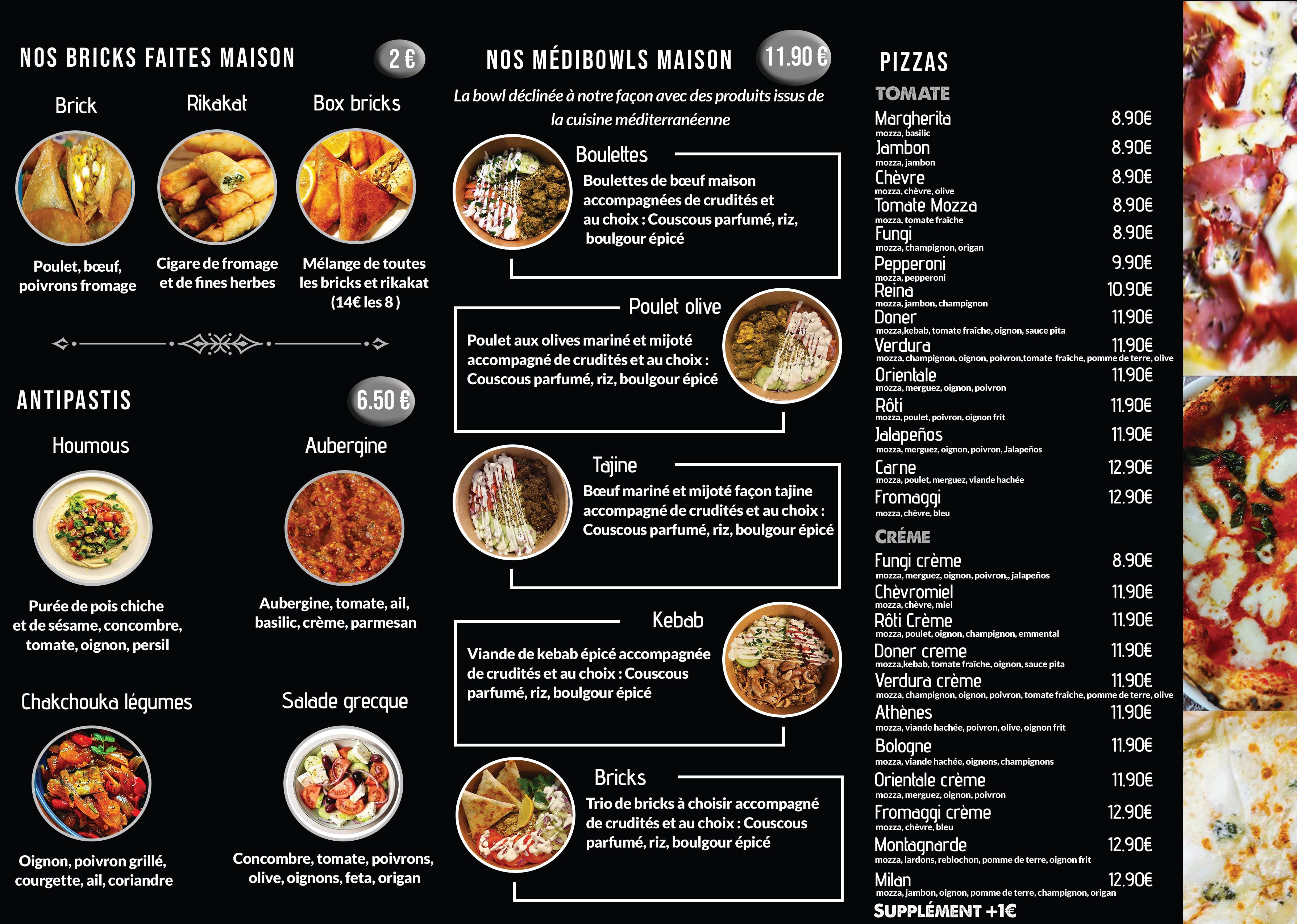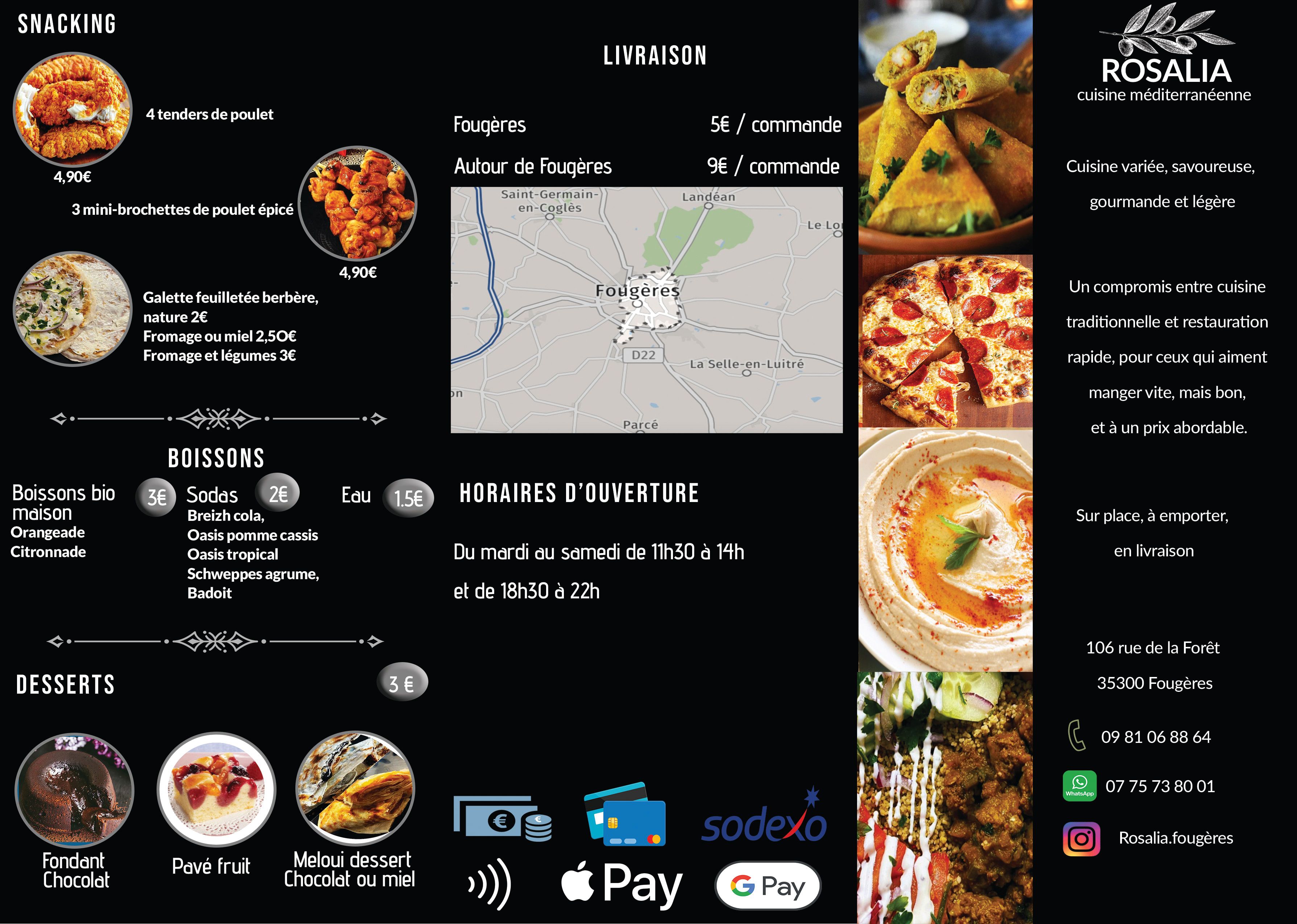 Le menu du restaurant a été conçu pour offrir une expérience visuelle et culinaire qui reflète l'ambiance unique de l'établissement. Le design est élégant et moderne, avec une typographie soignée et des couleurs harmonieuses qui invitent à la dégustation. Les sections du menu sont bien définies, avec une mise en page claire pour chaque catégorie : entrées, plats principaux, desserts, boissons. Chaque plat est accompagné d'une brève description pour éveiller l'appétit des clients, mettant en valeur les ingrédients frais et de qualité utilisés.