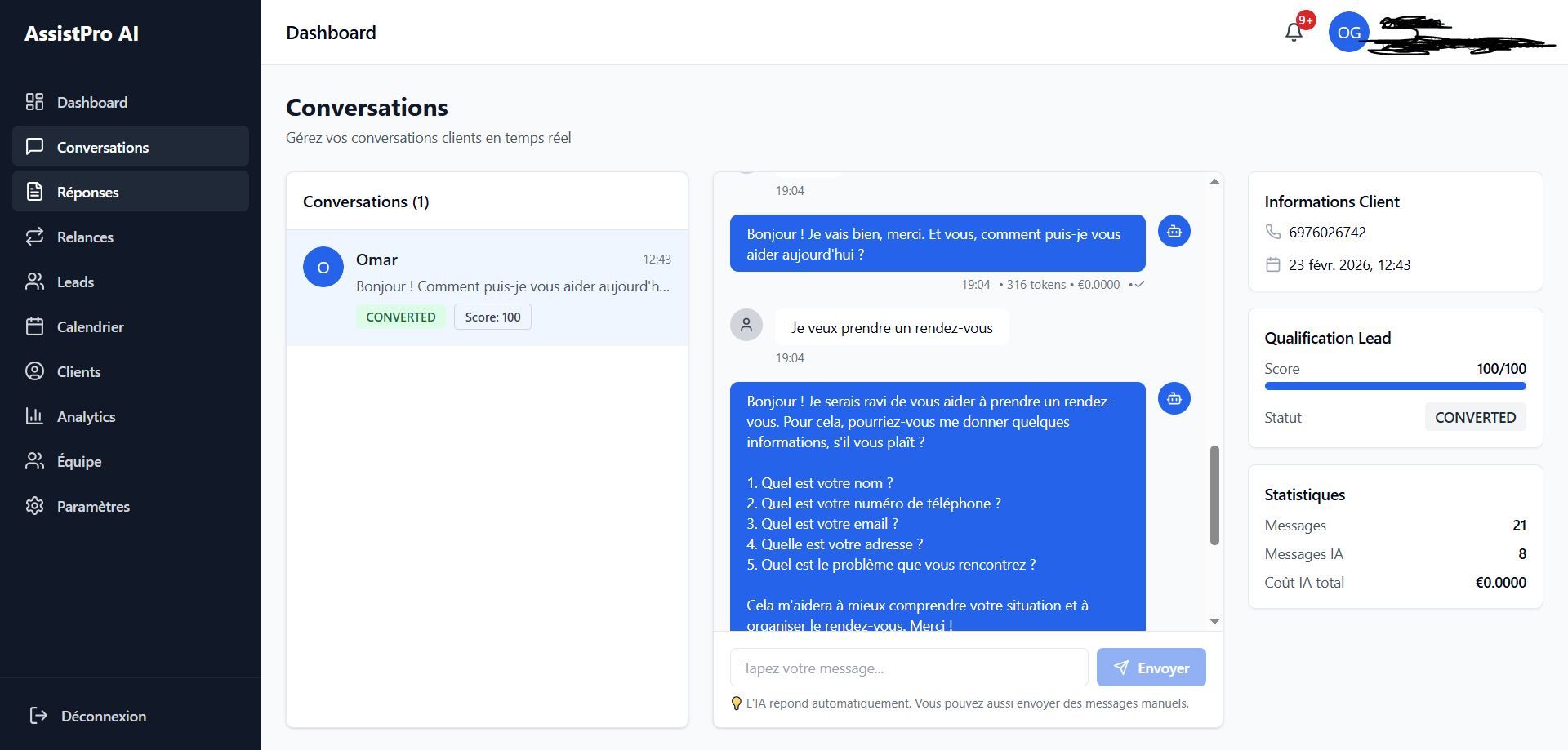 - Intégration d’Intelligence Artificielle (OpenAI, automatisation)