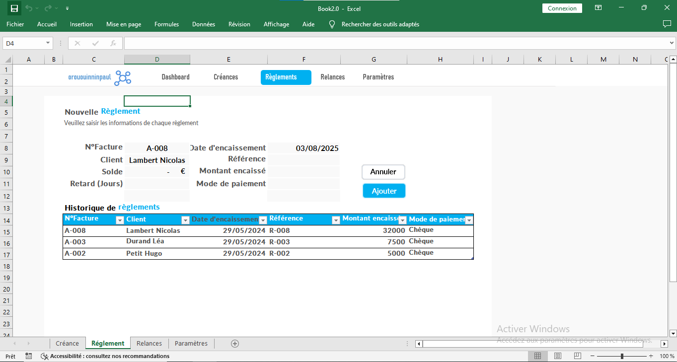 - Automatisation avec macros excel