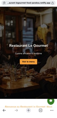Je crée un site moderne pour restaurant afin de présenter votre menu, vos plats et permettre aux clients de vous contacter facilement via WhatsApp.