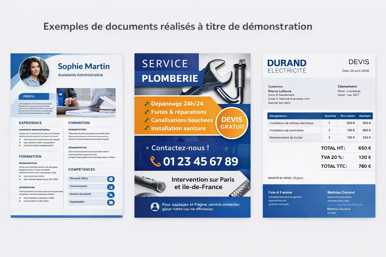 ✍️ CV 📢 Flyers et affiches 🧾 Devis 📄 Documents personnalisés 💬 Disponible par message.