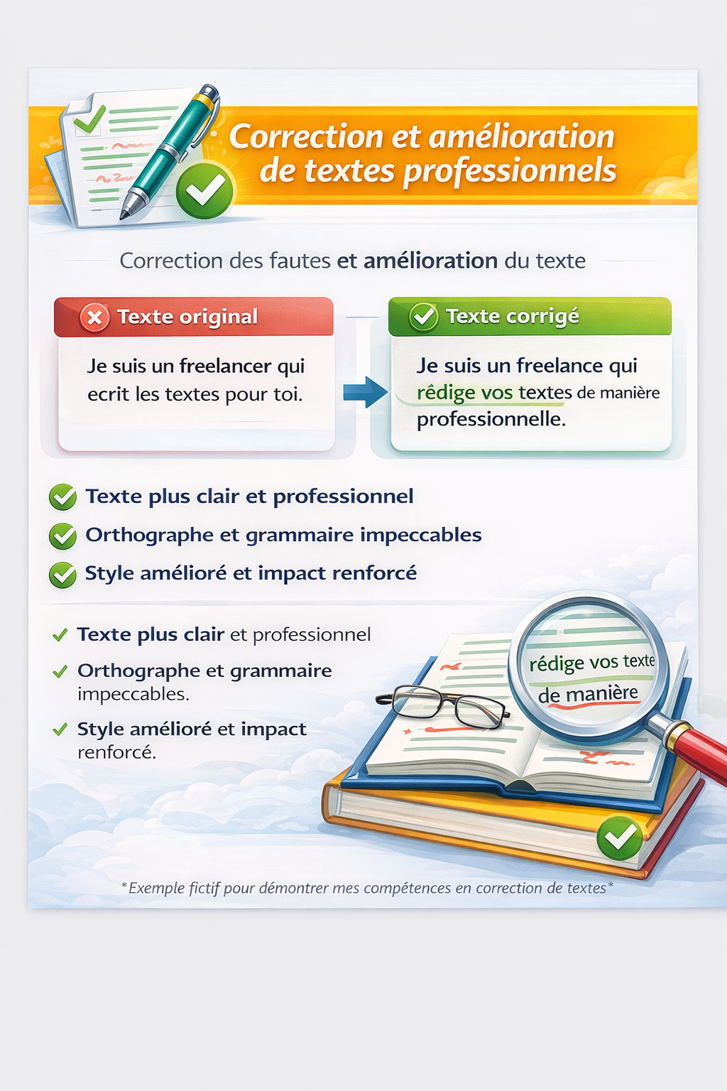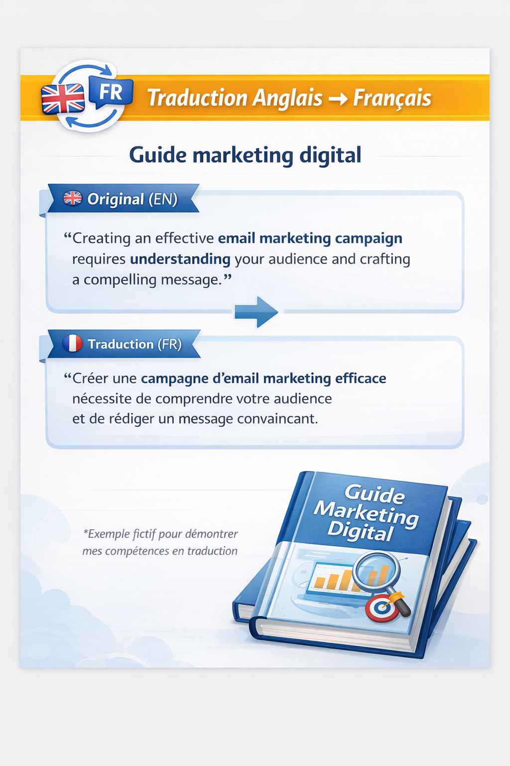 Je vais copywriting email marketing page de vente traduction français anglais correction de textes optimisat