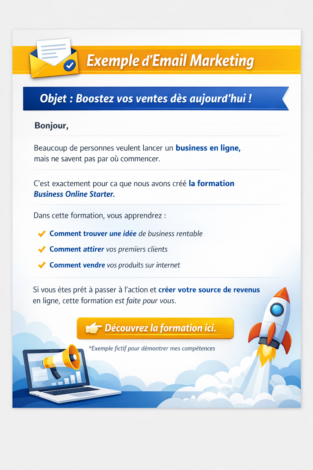 Je rédige des emails marketing et des pages de vente qui convertissent.”Je suis copywriter spécialis