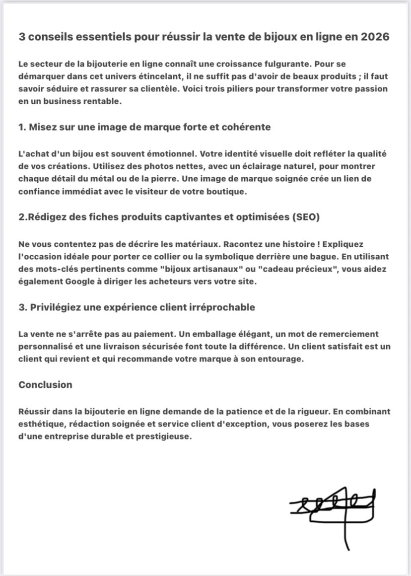 Je vais rédiger votre article de blog optimisé SEO ou vos fiches produits captivantes
