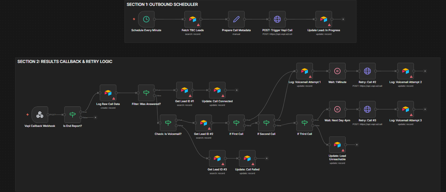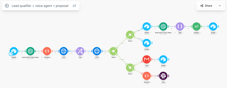 Outils : Vapi, Retell, ElevenLabs, n8n, Make, Airtable, Tally, Bland AI, Synthflow… + CRM (GHL, HubSpot, Salesforce, API,...).