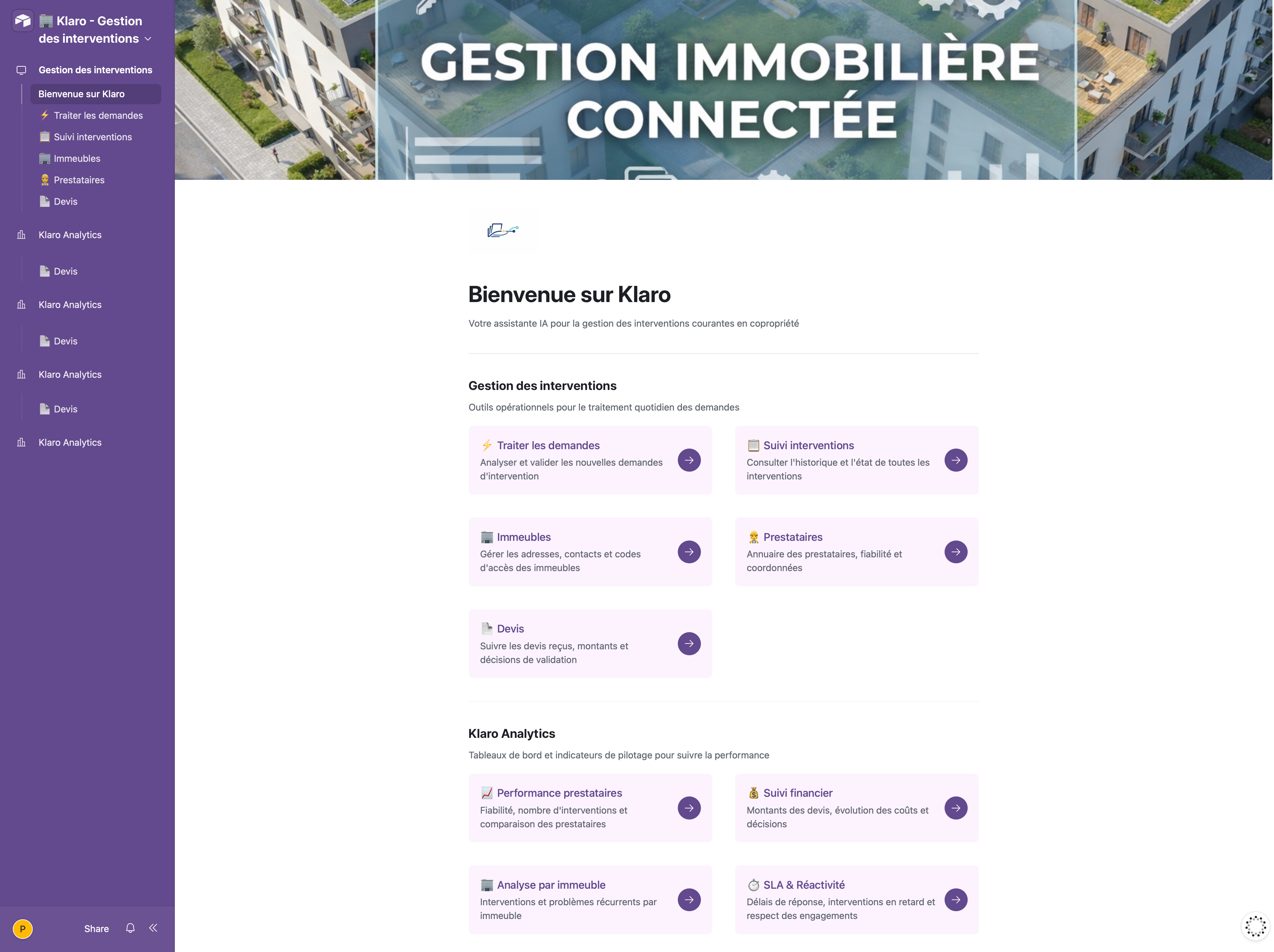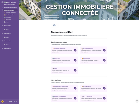 Mon projet Klaro — application complète de gestion d'interventions pour des syndics de copropriété, construite sans une ligne de code — m'a valu la certification professionnelle RS6689 en février 2026.