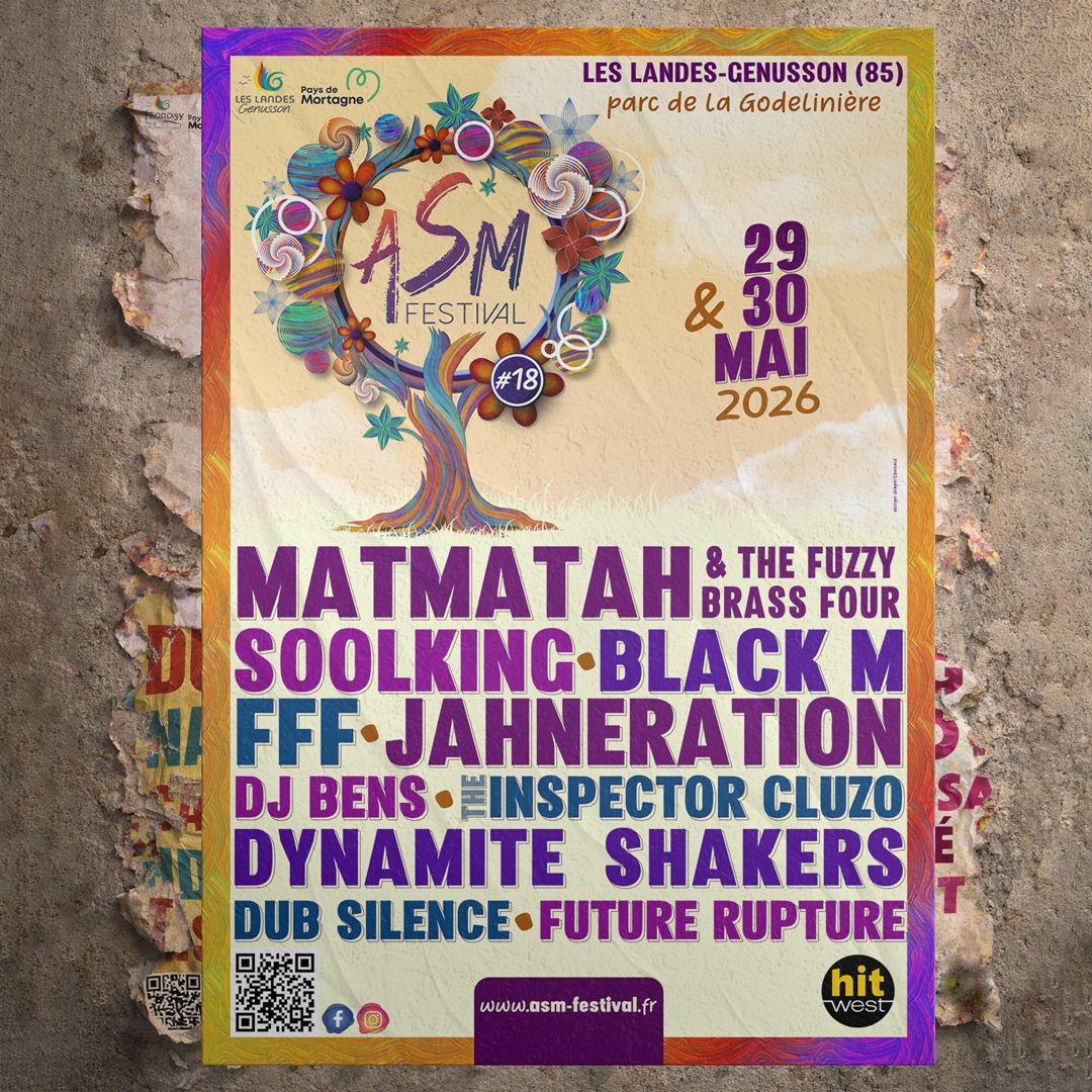 Graphiste officiel du ASM Festival. Conception graphique des différents supports pour le print ( affiches / flyers / roll up/ gobelets / kakemono ...) et pour les réseaux sociaux.