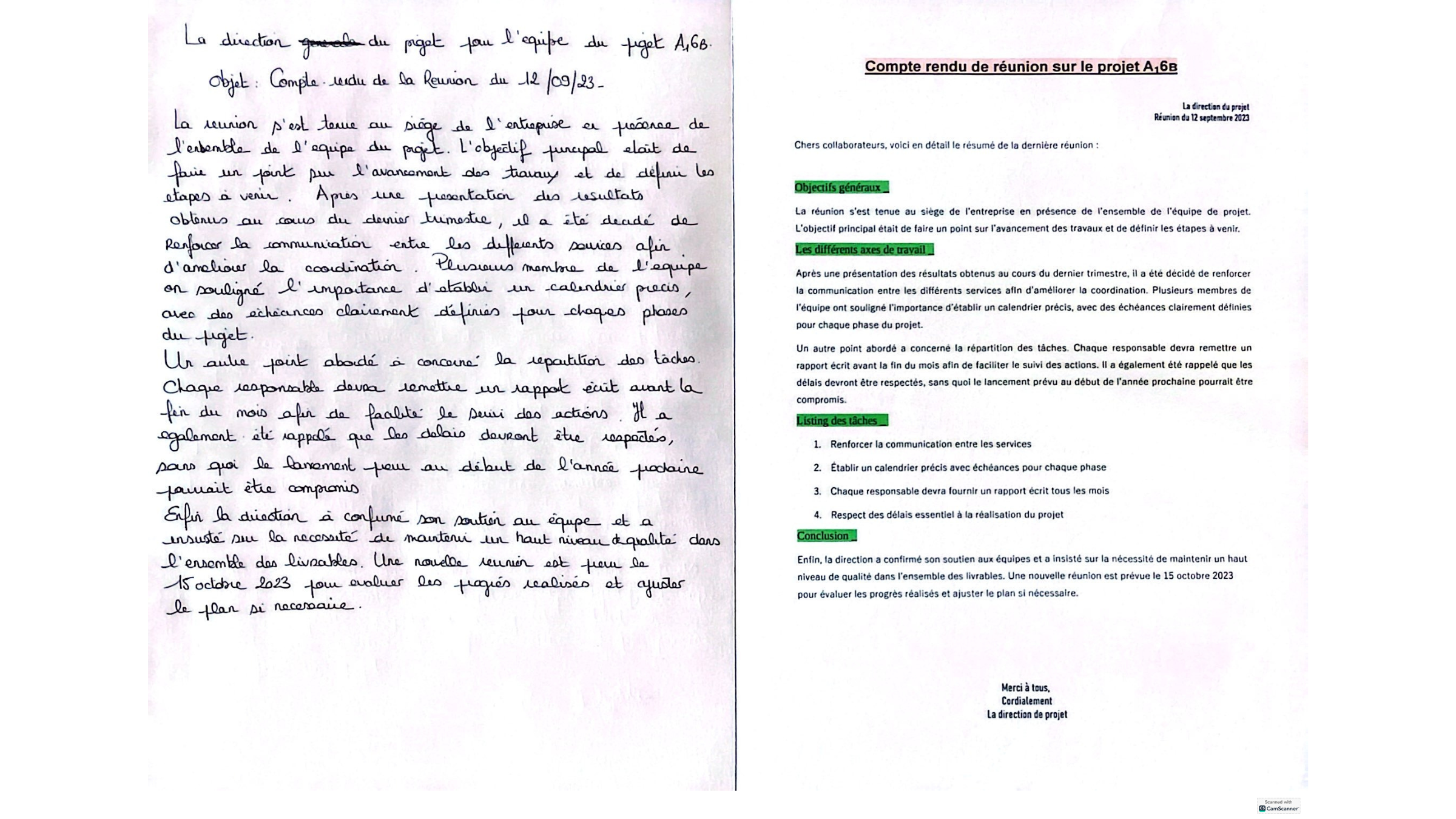 Retranscription audio/vidéo et manuscrits → en texte structuré et sans fautes
