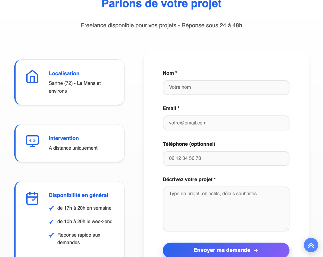 📍 Basé près du Mans, j'interviens partout en France à distance.