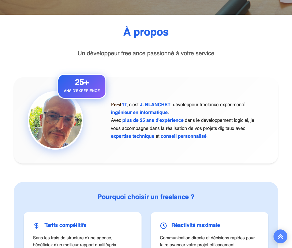 👋 Ingénieur développeur web (CNAM), j'accompagne les artisans, commerçants, professions libérales et TPE dans leur présence en ligne avec des sites vitrines simples, sécurisés et durables.