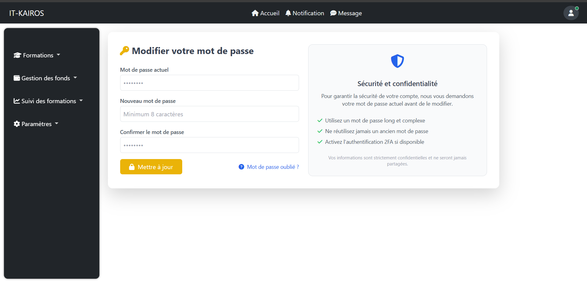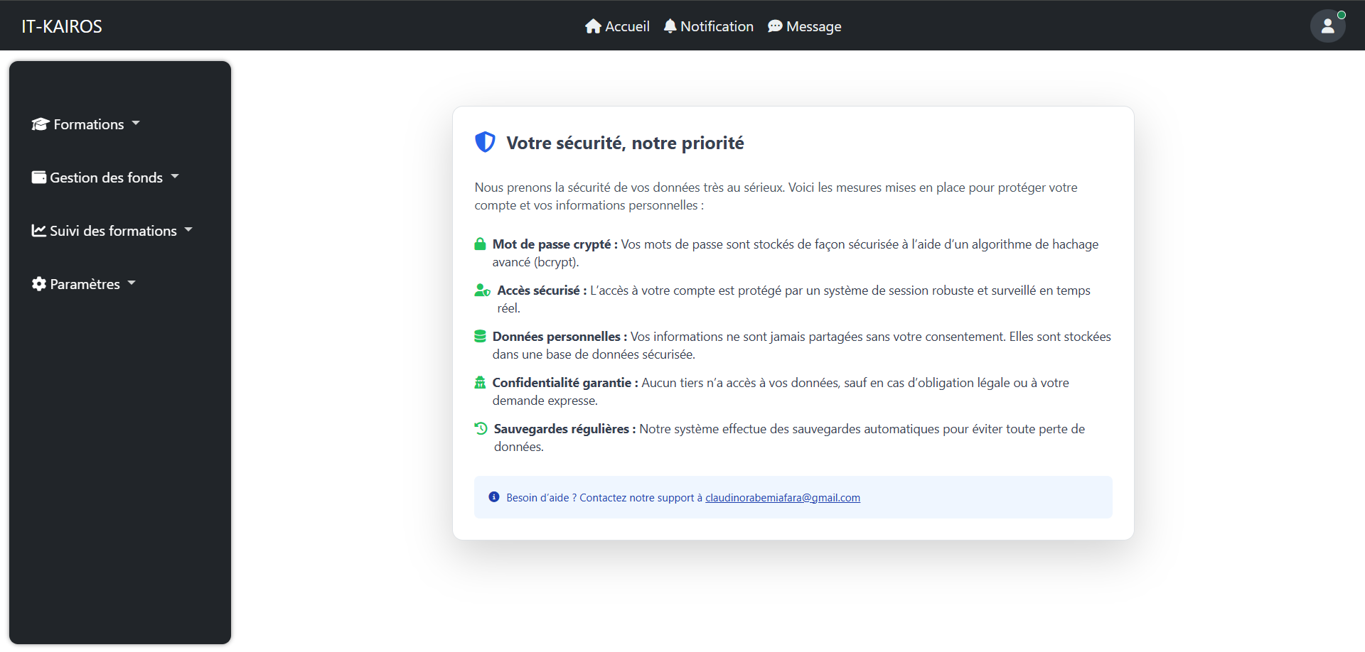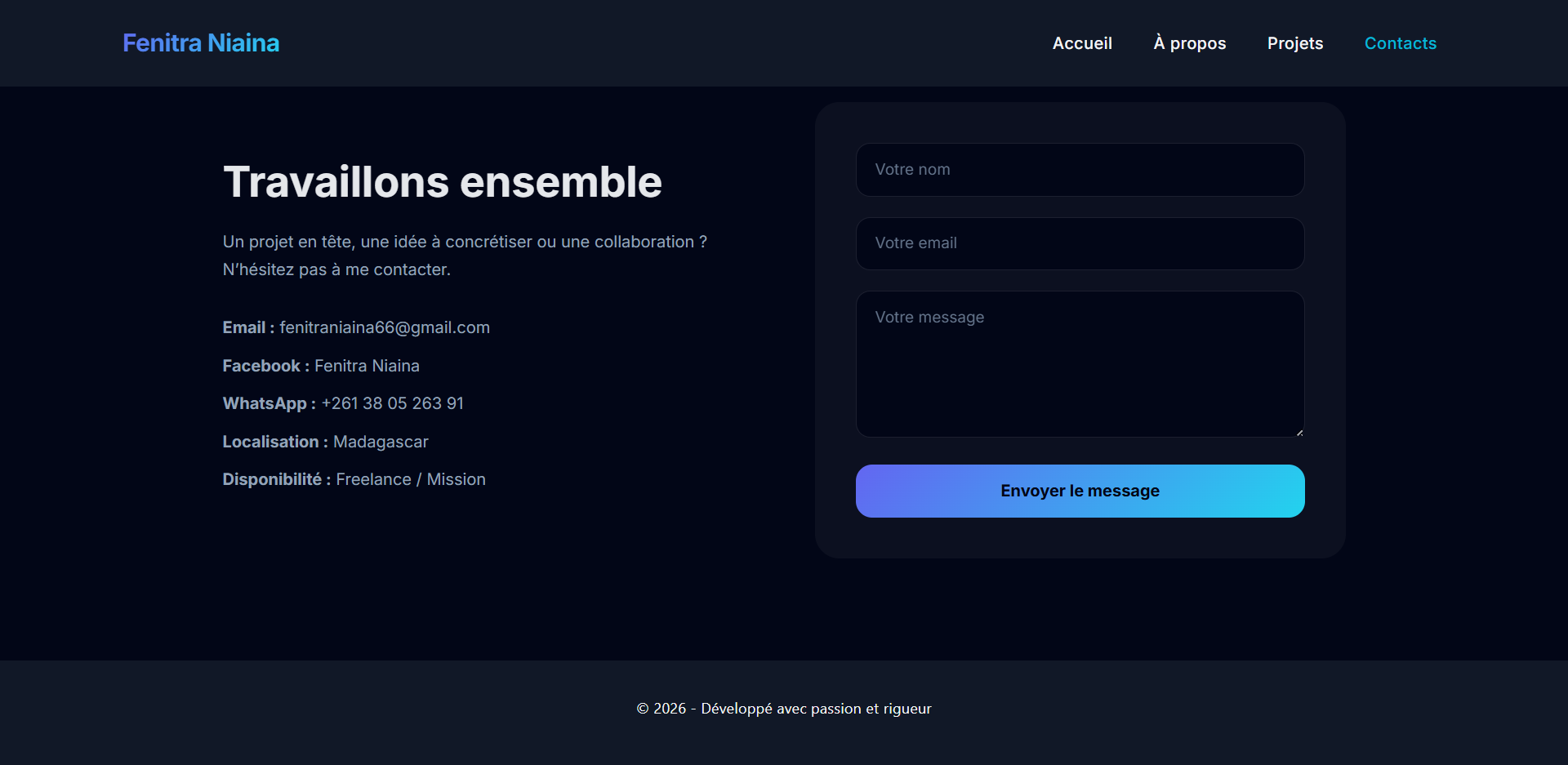 Je mets l’accent sur la performance, la sécurité et un design moderne afin de garantir une solution fiable et évolutive.