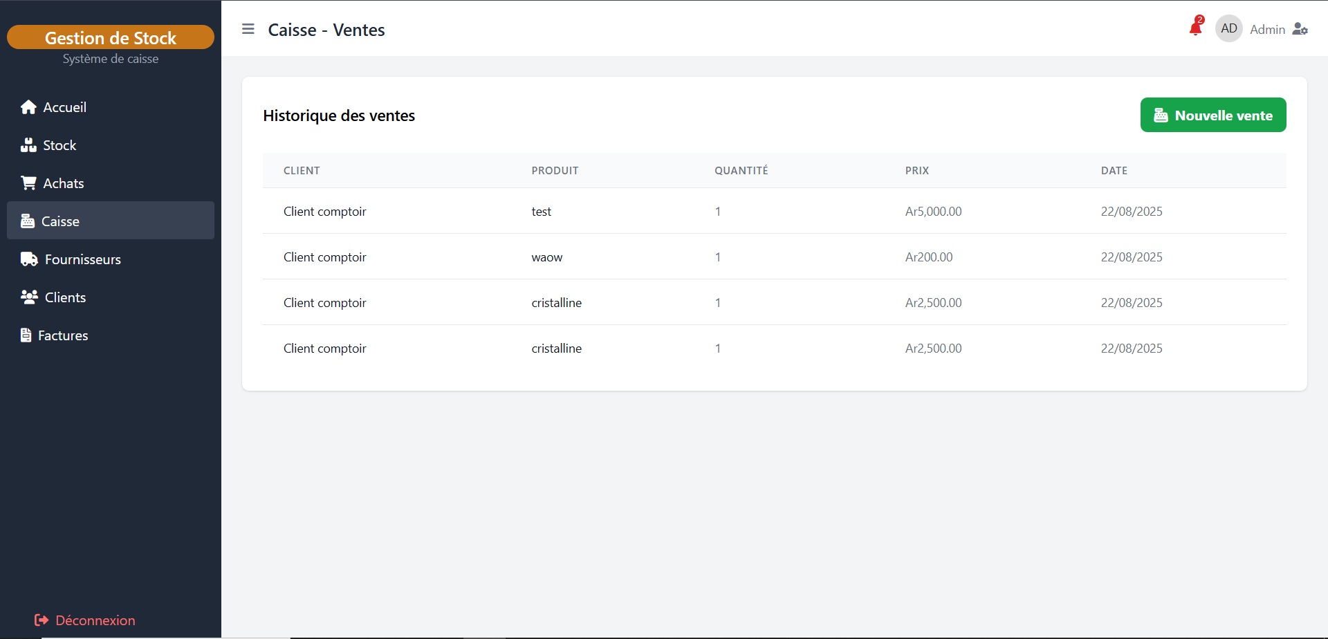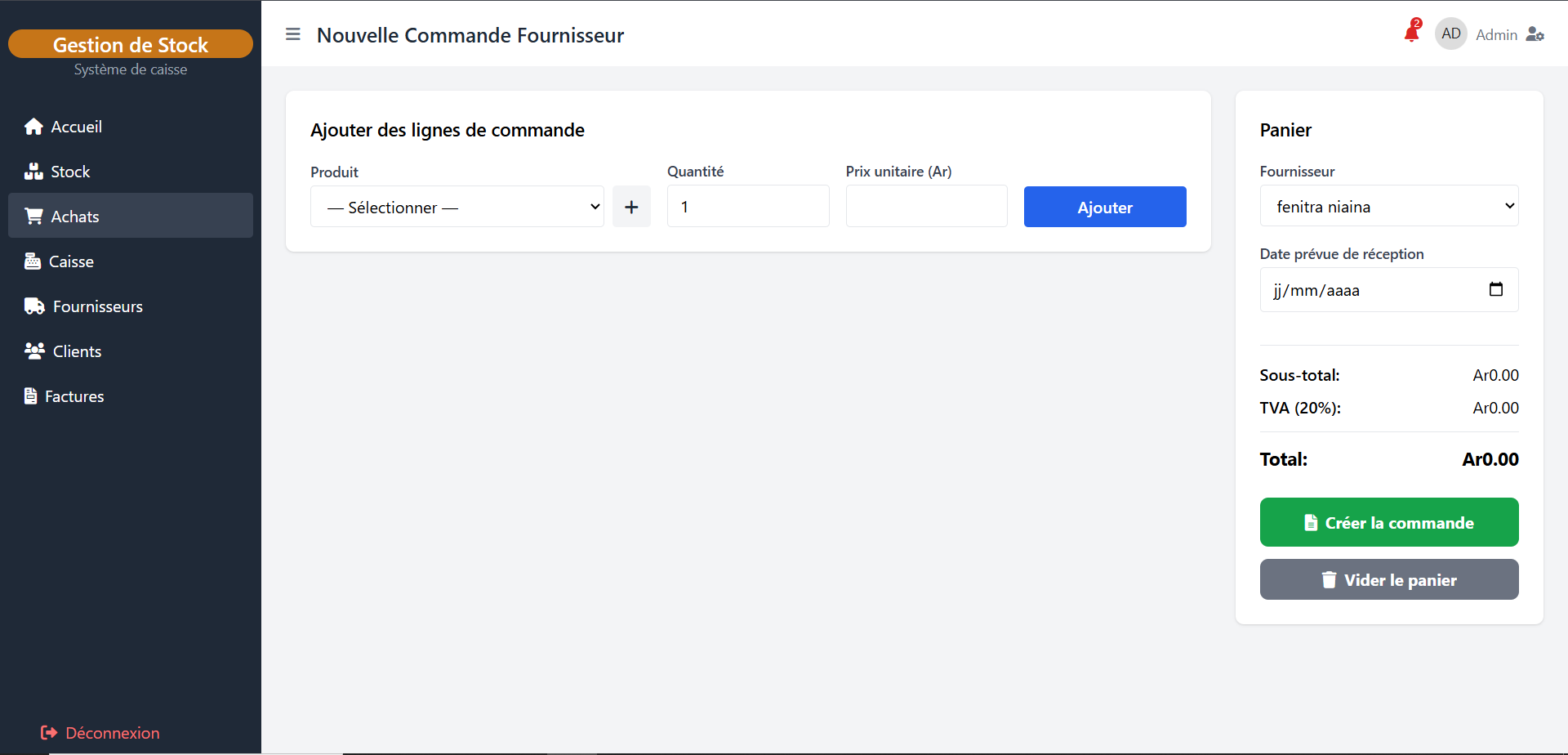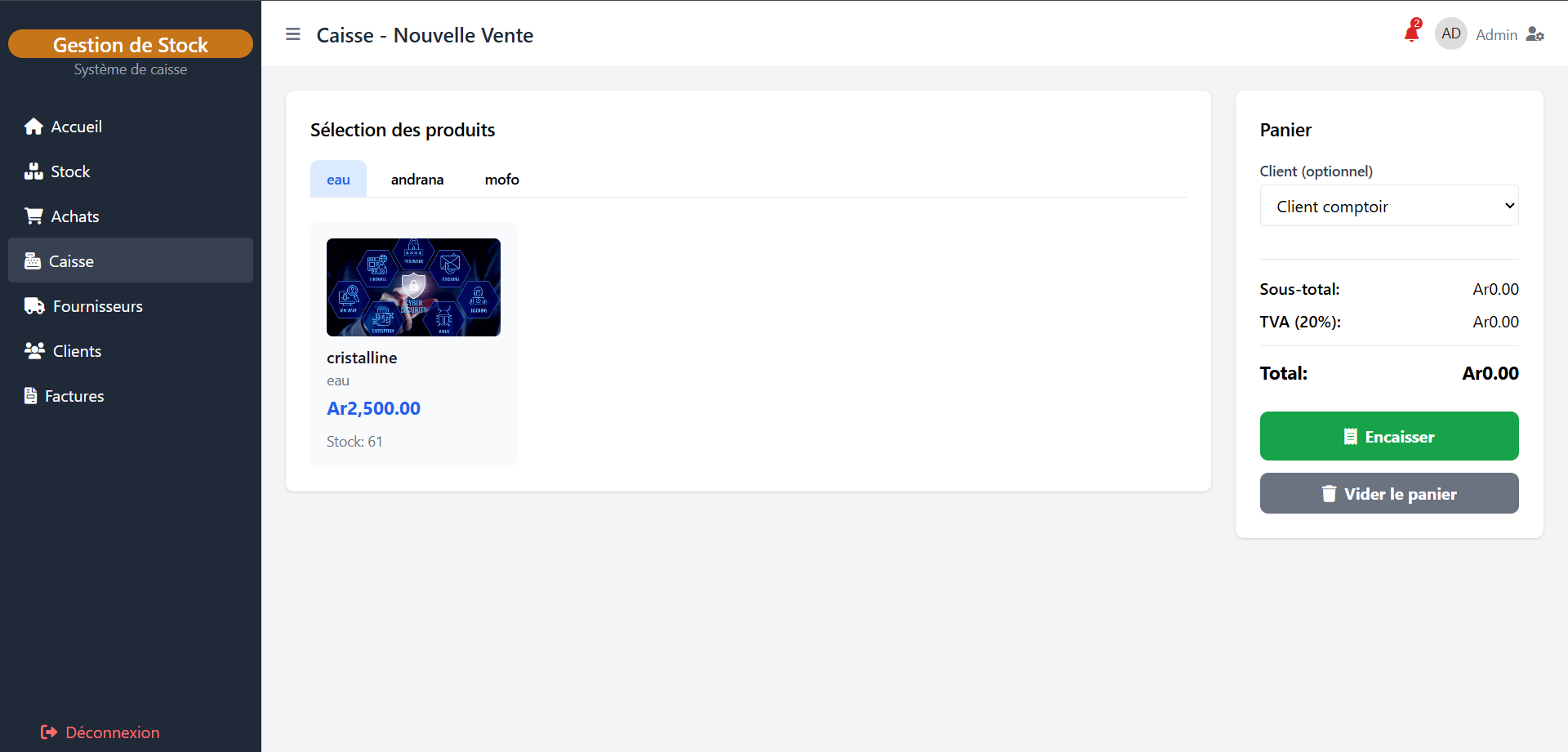 Vente au total 0